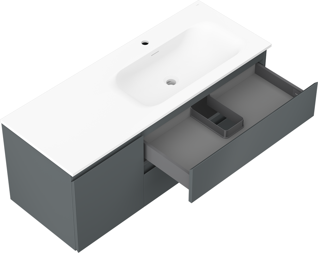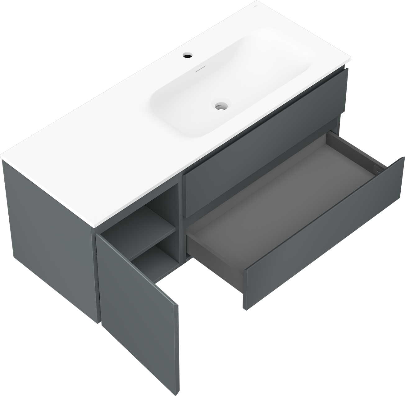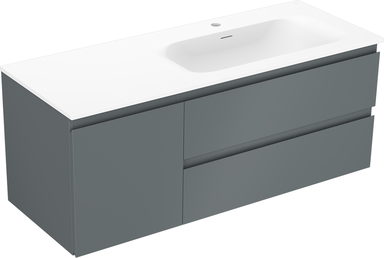 Mexen Orio szafka łazienkowa 120 cm z umywalką Vela prawą, 2S, 1D, grafit mat/biała mat - 91A13-12047-3-BBFFF66-W23P01