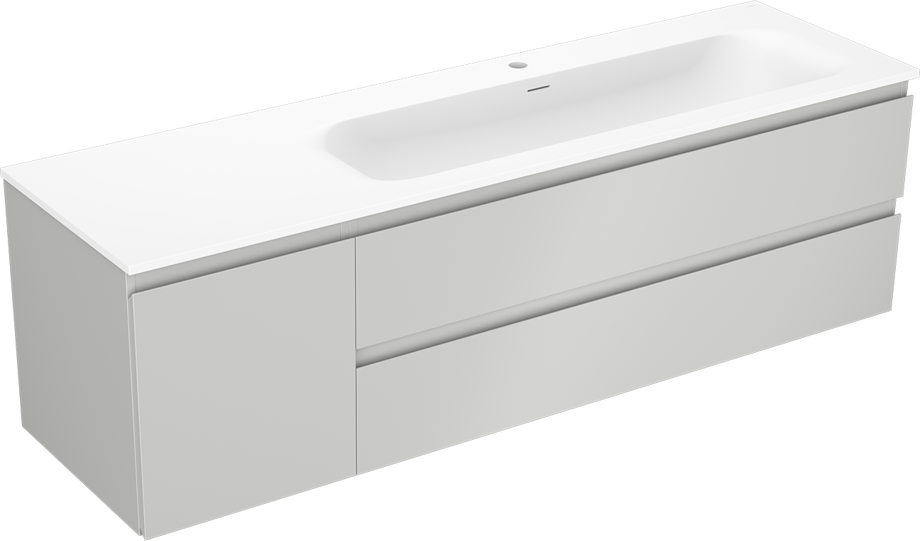 Mexen Orio szafka łazienkowa 160 cm z umywalką Vela prawą, 2S, 1D, szara mat/biała mat - 91A13-16047-3-BBFFF62-W23P01