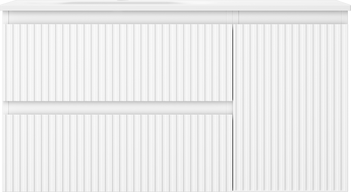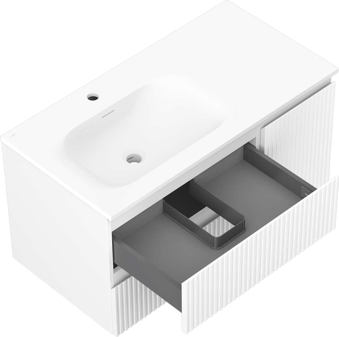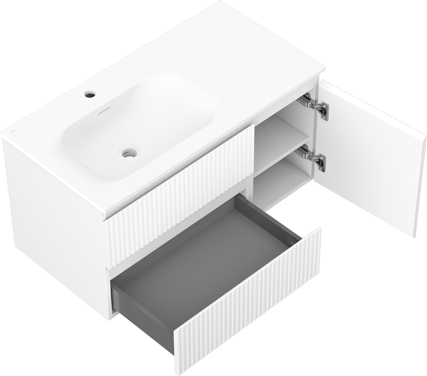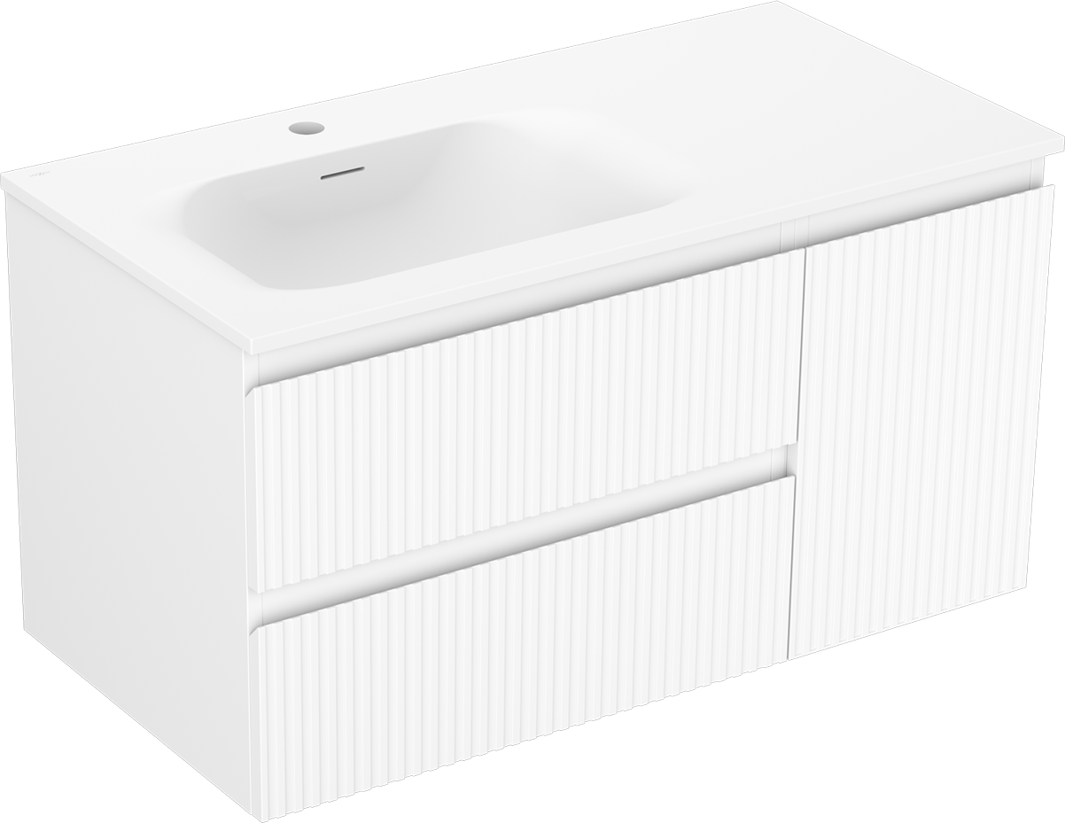 Mexen Rivel szafka łazienkowa 90 cm z umywalką Vela lewą, 2S, 1D, ryflowana, biała mat - 91A23-09047-3-BBFFF01-W23L01