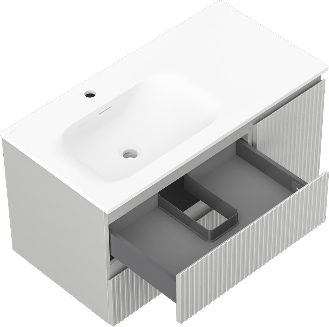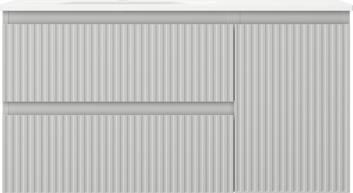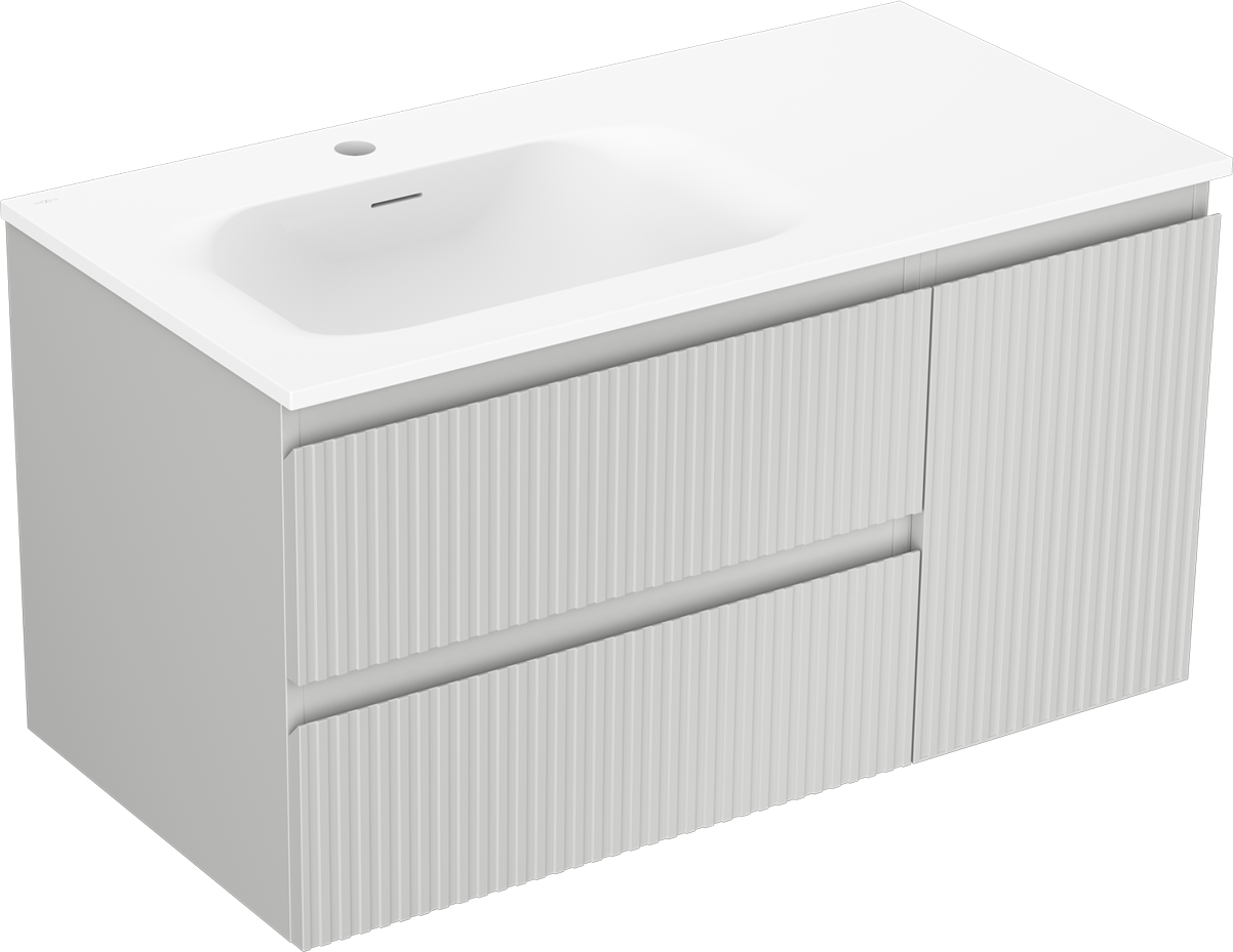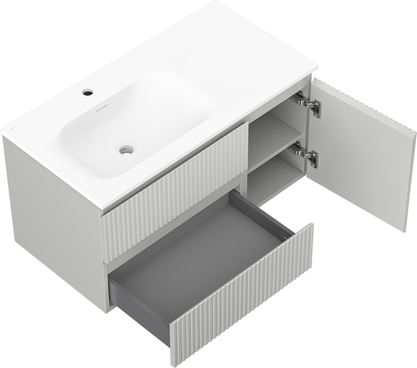 Mexen Rivel szafka łazienkowa 90 cm z umywalką Vela lewą, 2S, 1D, ryflowana, szara mat/biała mat - 91A23-09047-3-BBFFF62-W23L01