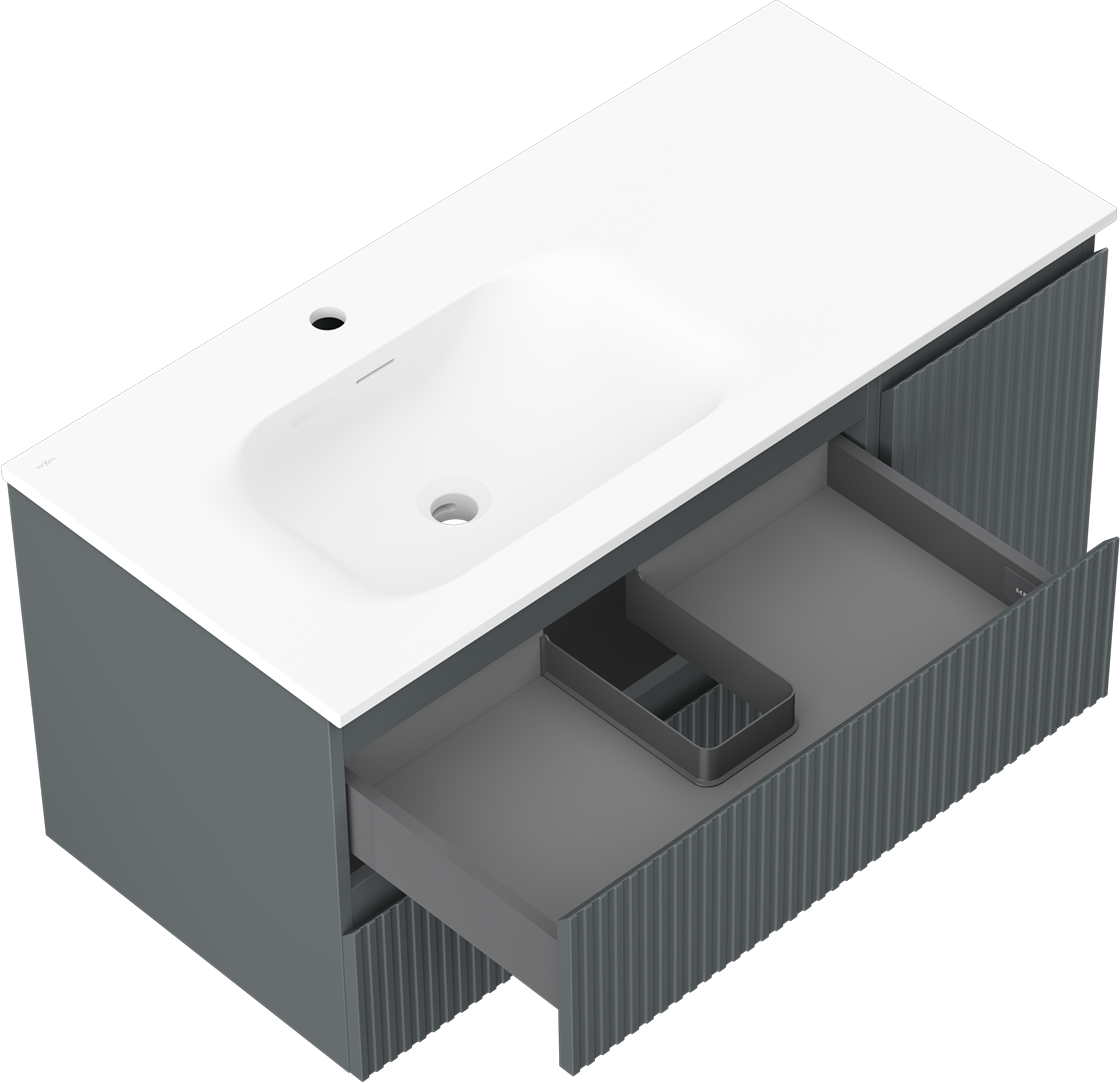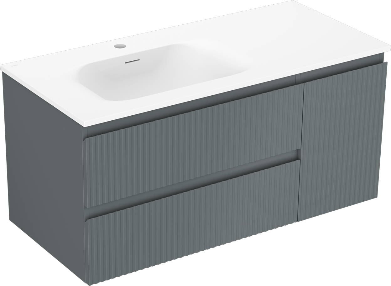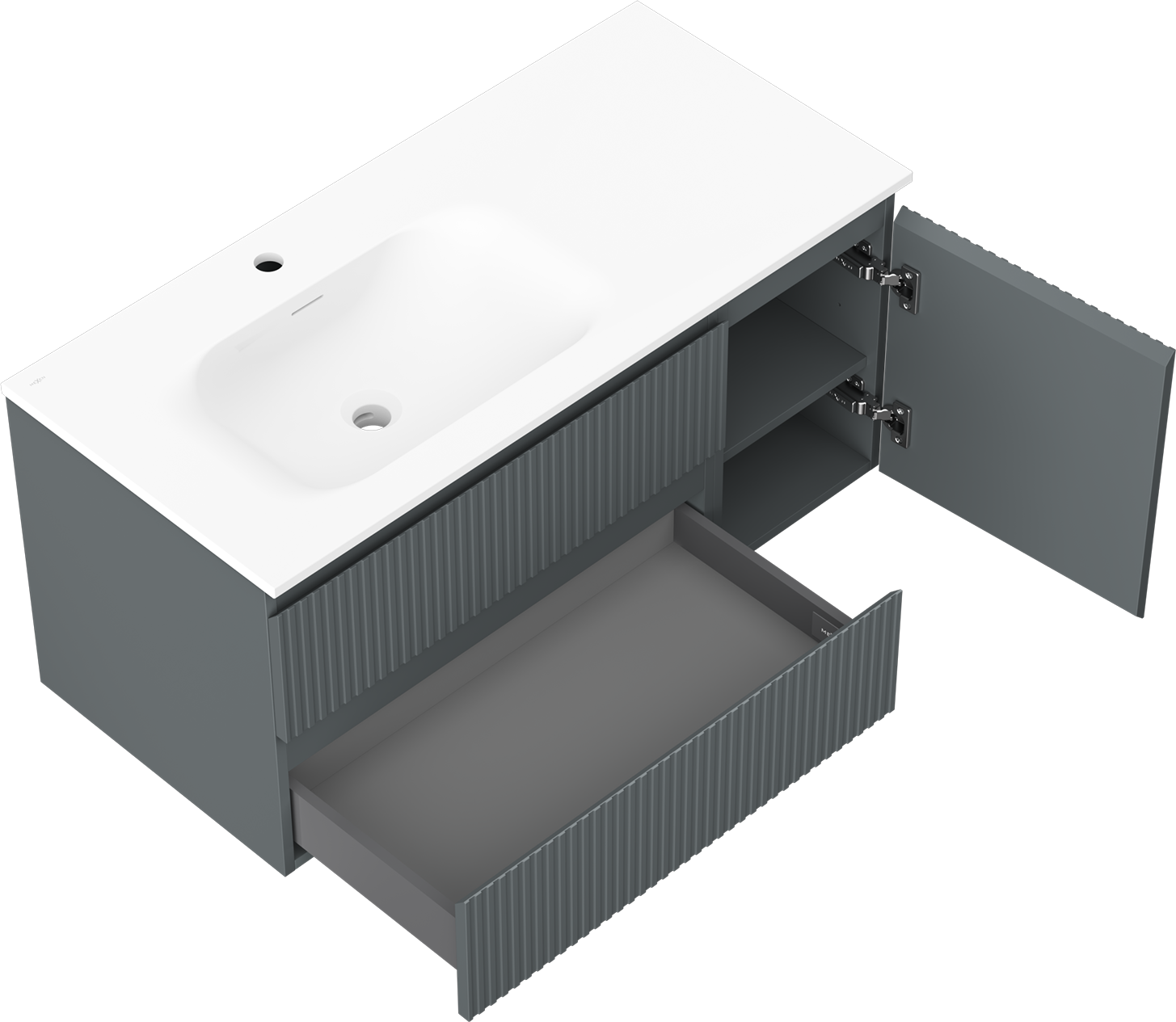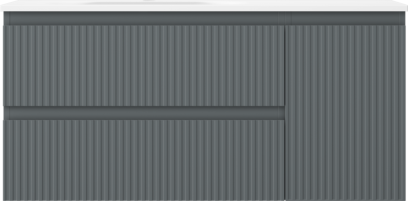 Mexen Rivel szafka łazienkowa 100 cm z umywalką Vela lewą, 2S, 1D, ryflowana, grafit/biała mat - 91A23-10047-3-BBFFF66-W23L01