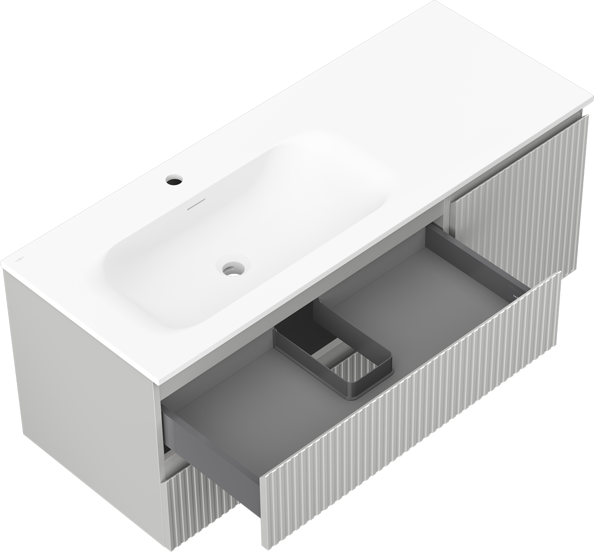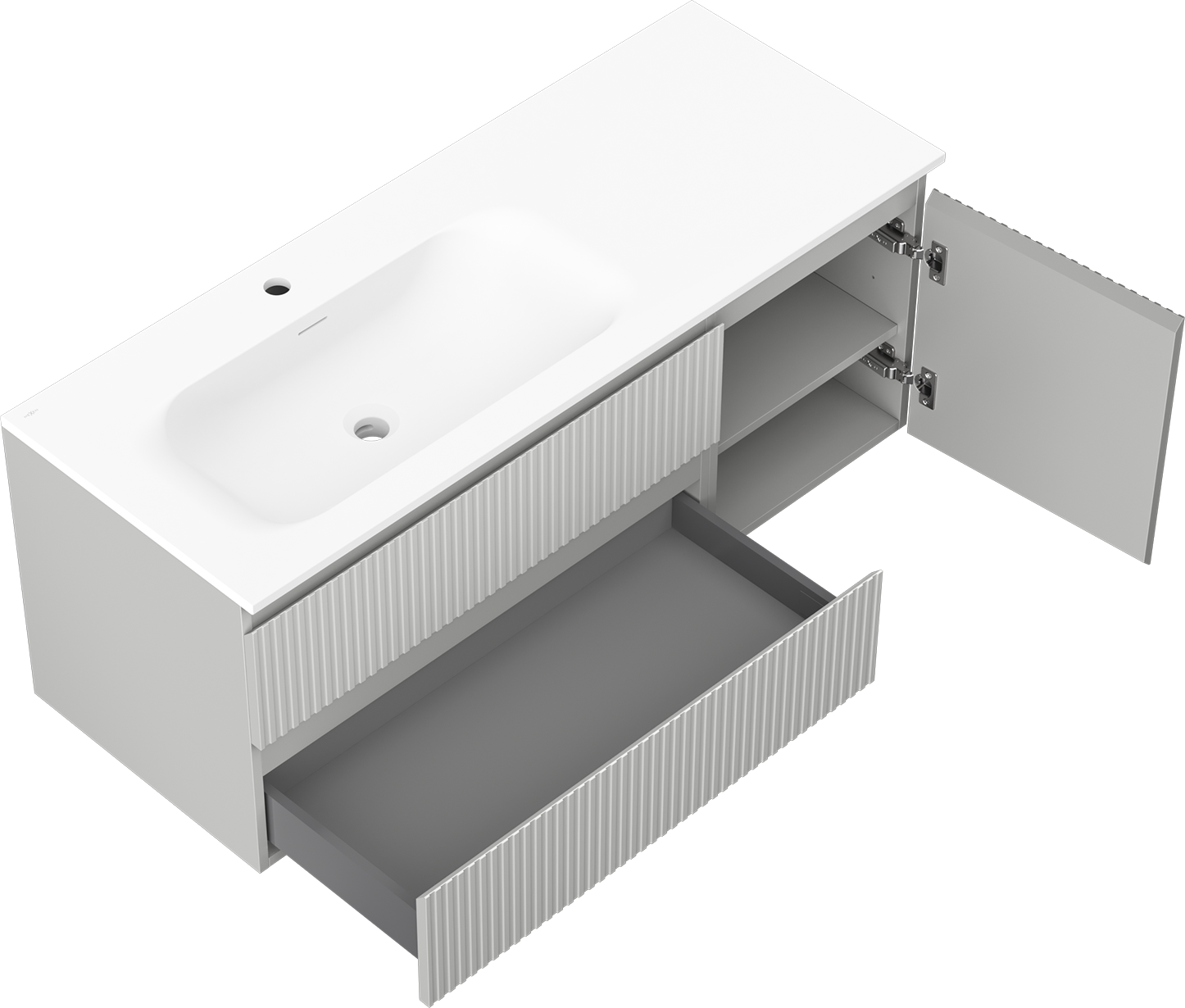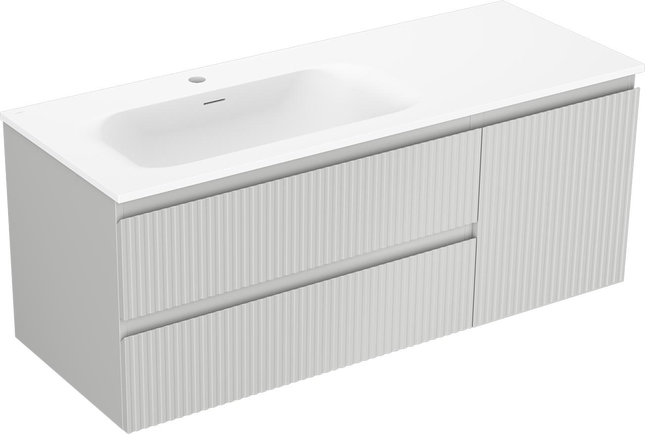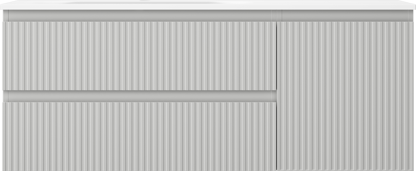 Mexen Rivel szafka łazienkowa 120 cm z umywalką Vela lewą, 2S, 1D, ryflowana, szara mat/biała mat - 91A23-12047-3-BBFFF62-W23L01