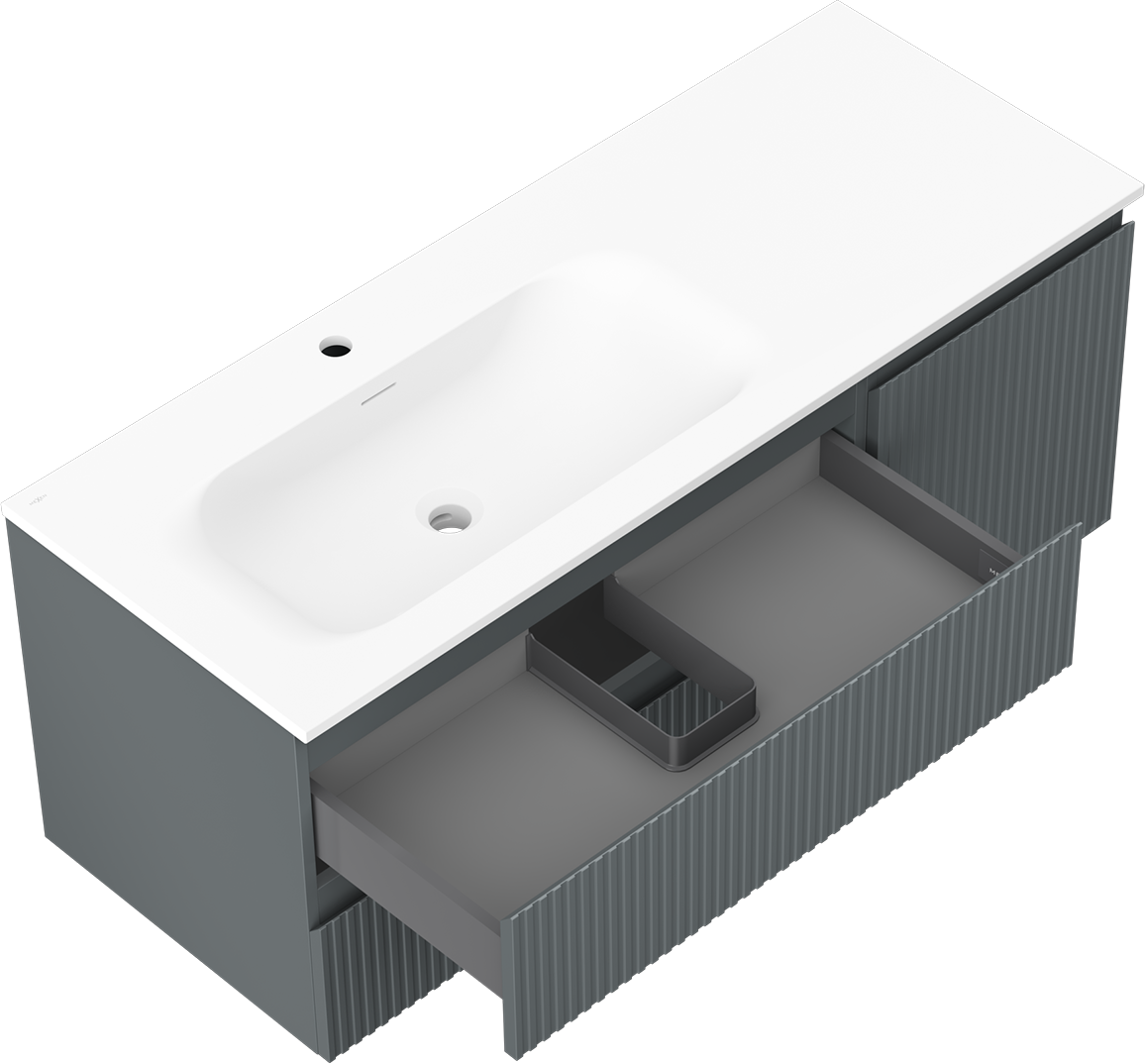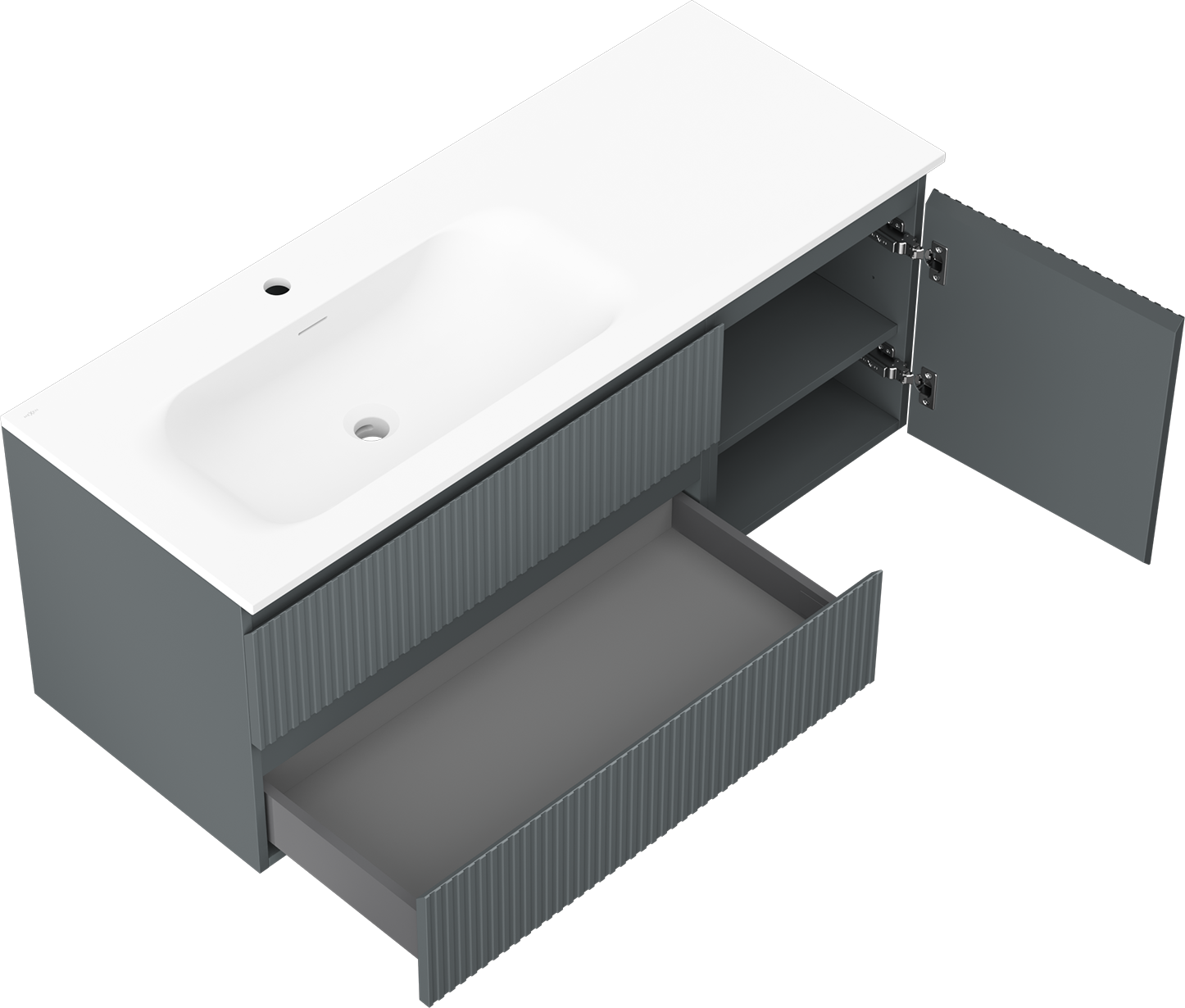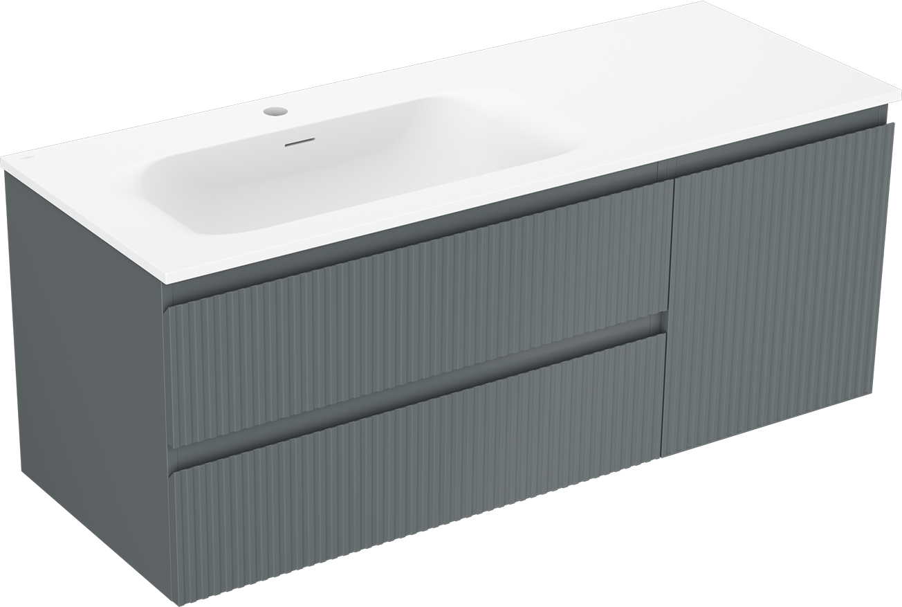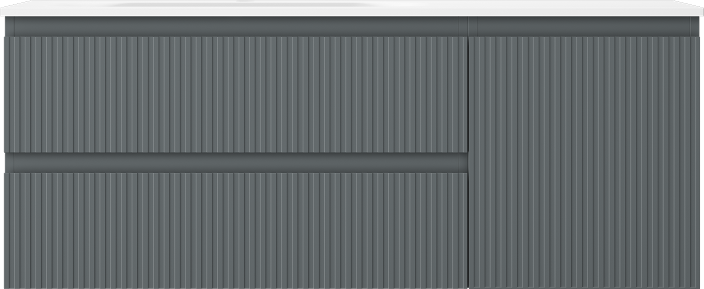 Mexen Rivel szafka łazienkowa 120 cm z umywalką Vela lewą, 2S, 1D, ryflowana, grafit/biała mat - 91A23-12047-3-BBFFF66-W23L01
