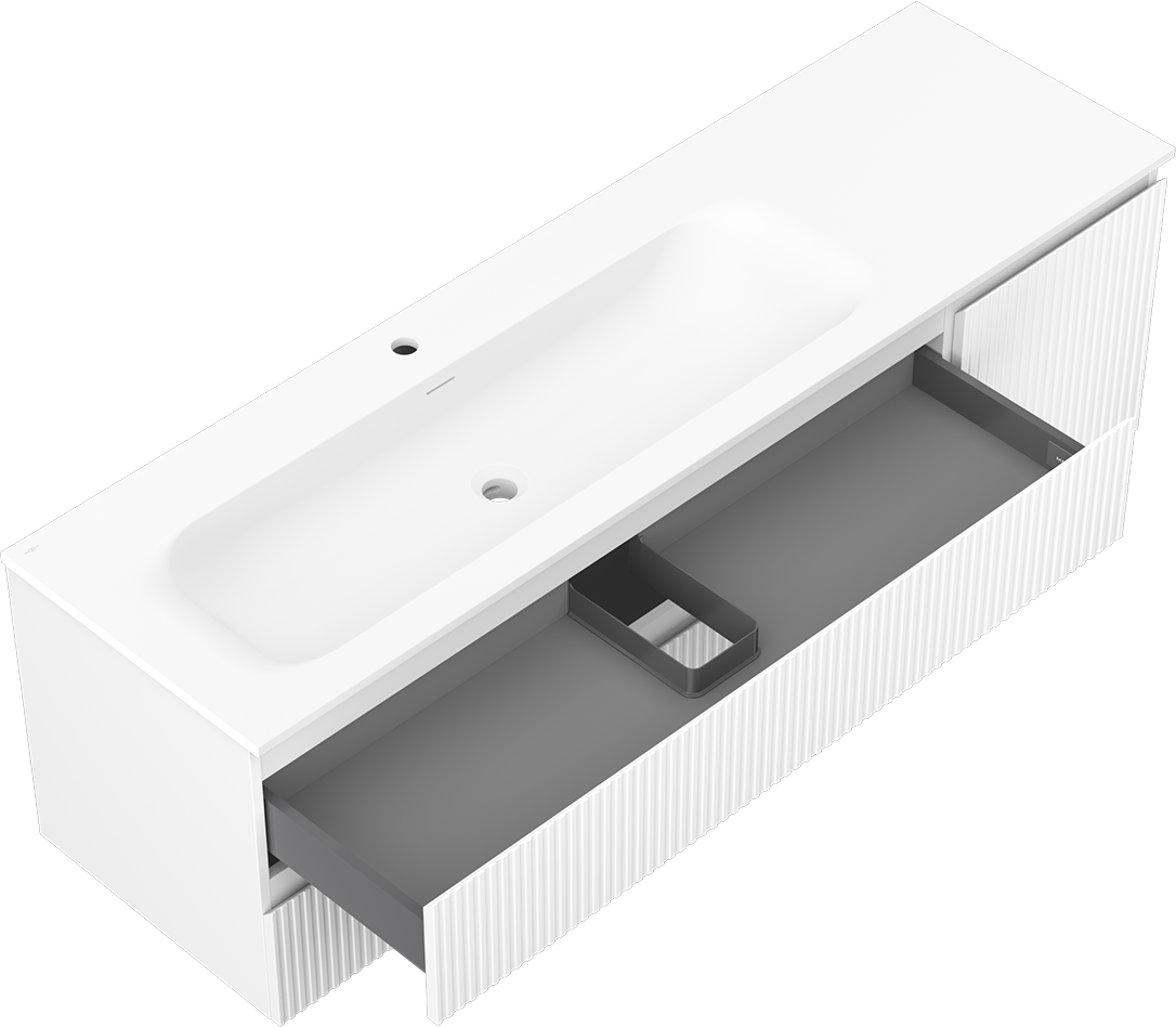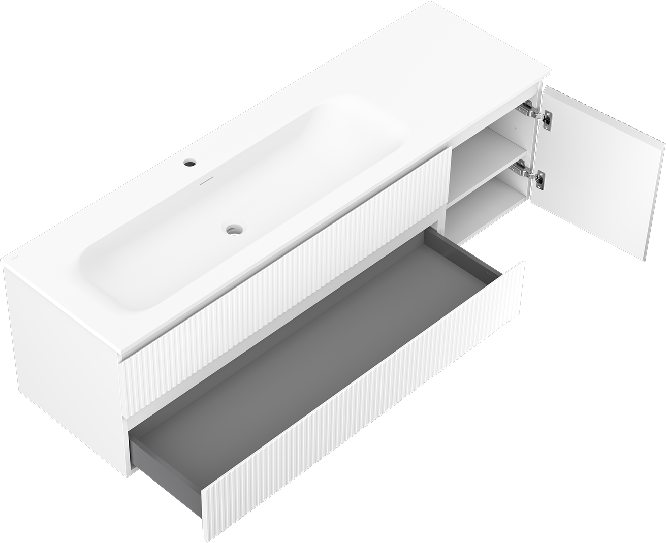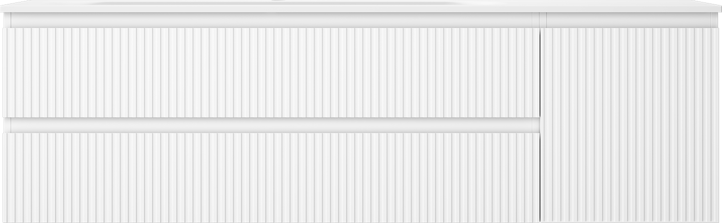 Mexen Rivel szafka łazienkowa 160 cm z umywalką Vela lewą, 2S, 1D, ryflowana, biała mat - 91A23-16047-3-BBFFF01-W23L01