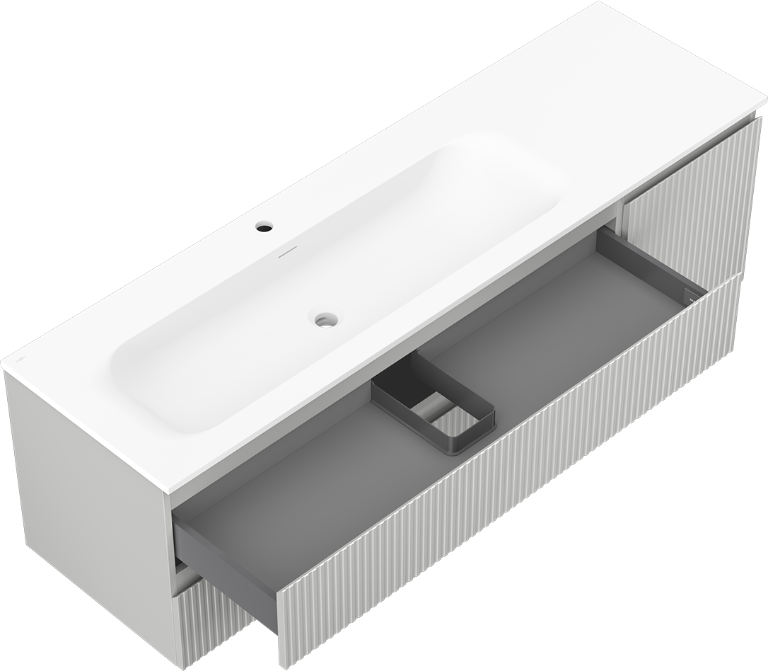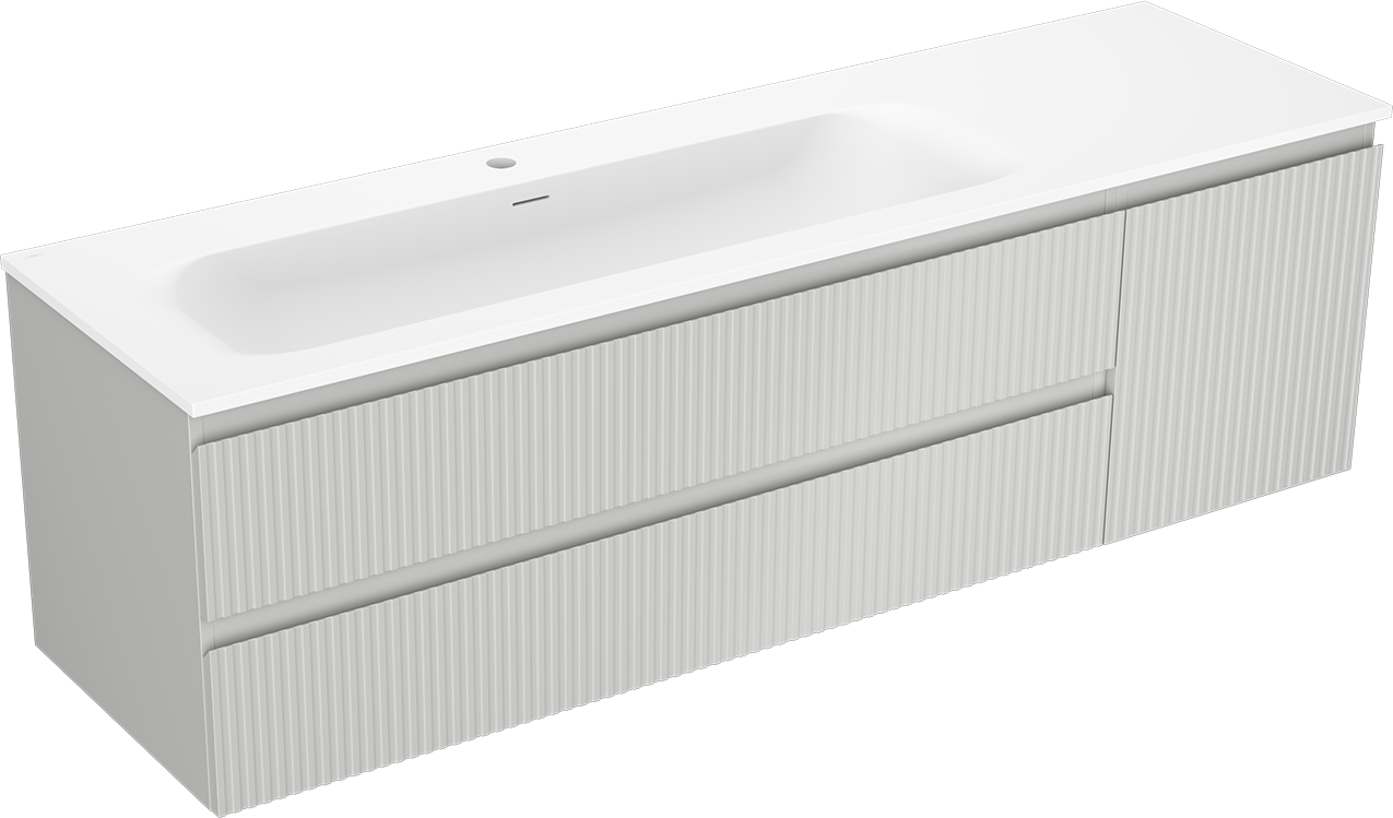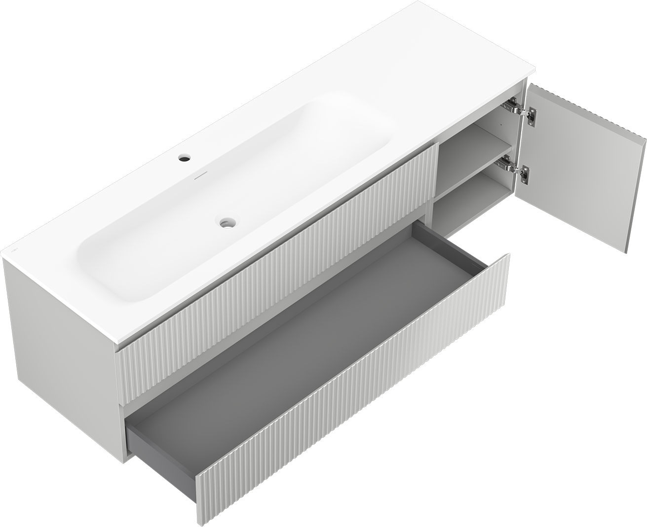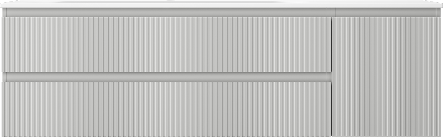 Mexen Rivel szafka łazienkowa 160 cm z umywalką Vela lewą, 2S, 1D, ryflowana, szara mat/biała mat - 91A23-16047-3-BBFFF62-W23L01