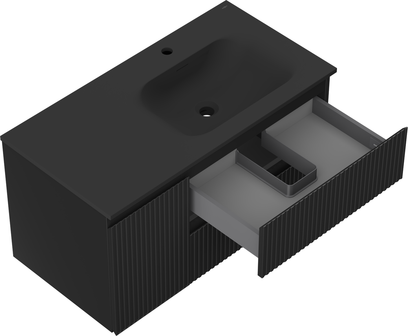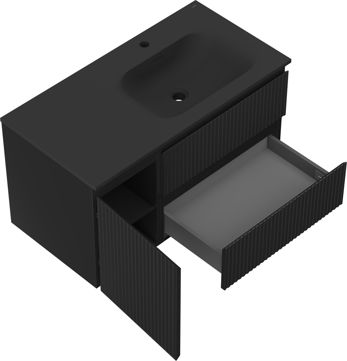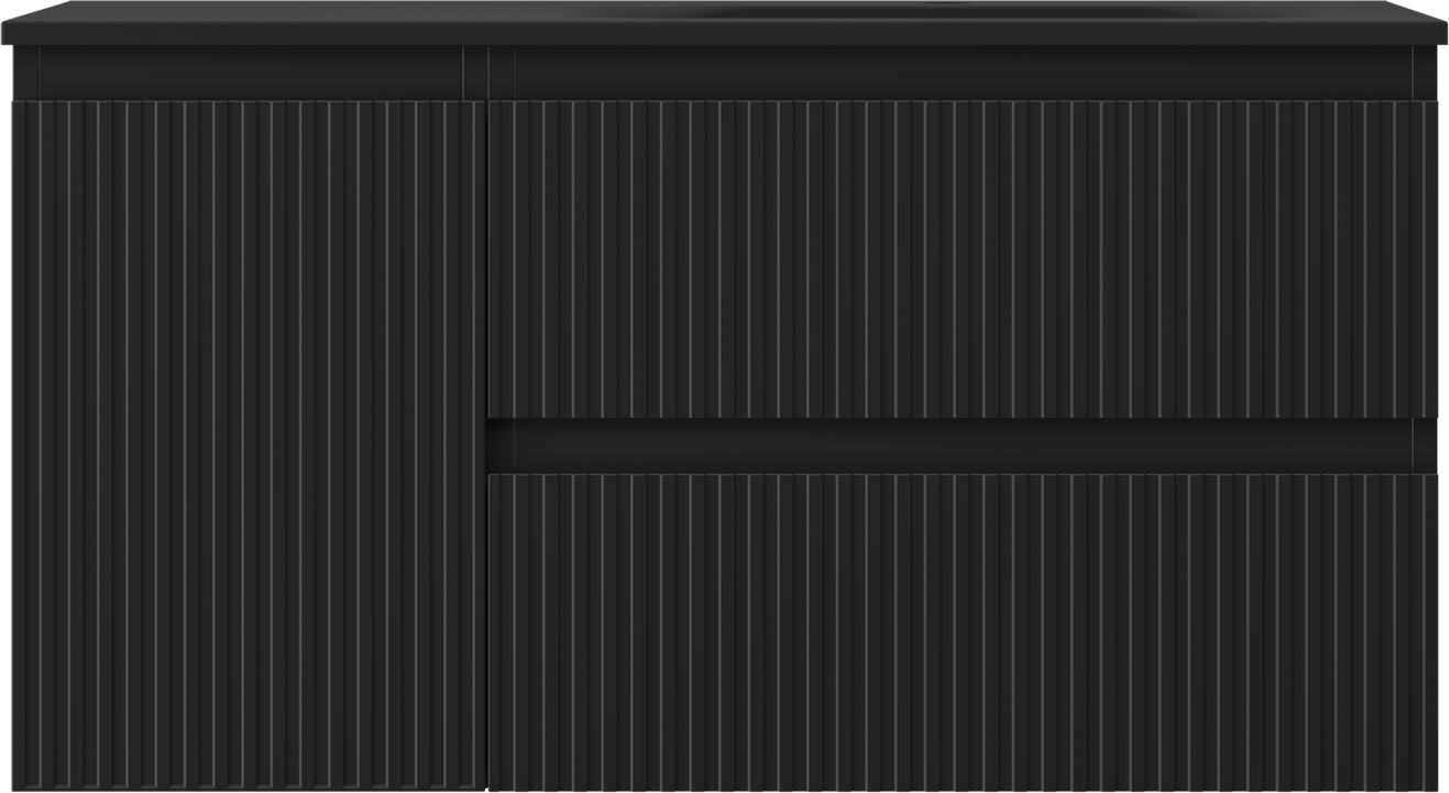 Mexen Rivel szafka łazienkowa 90 cm z umywalką Vela prawą, 2S, 1D, ryflowana, czarna mat - 91A23-09047-3-BBFFF71-W23P71