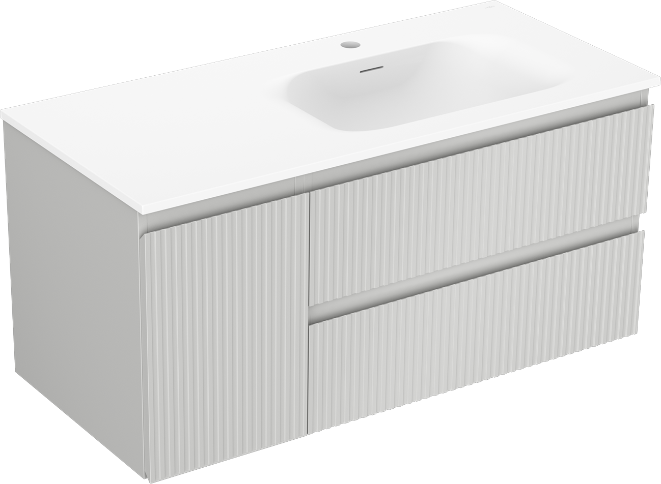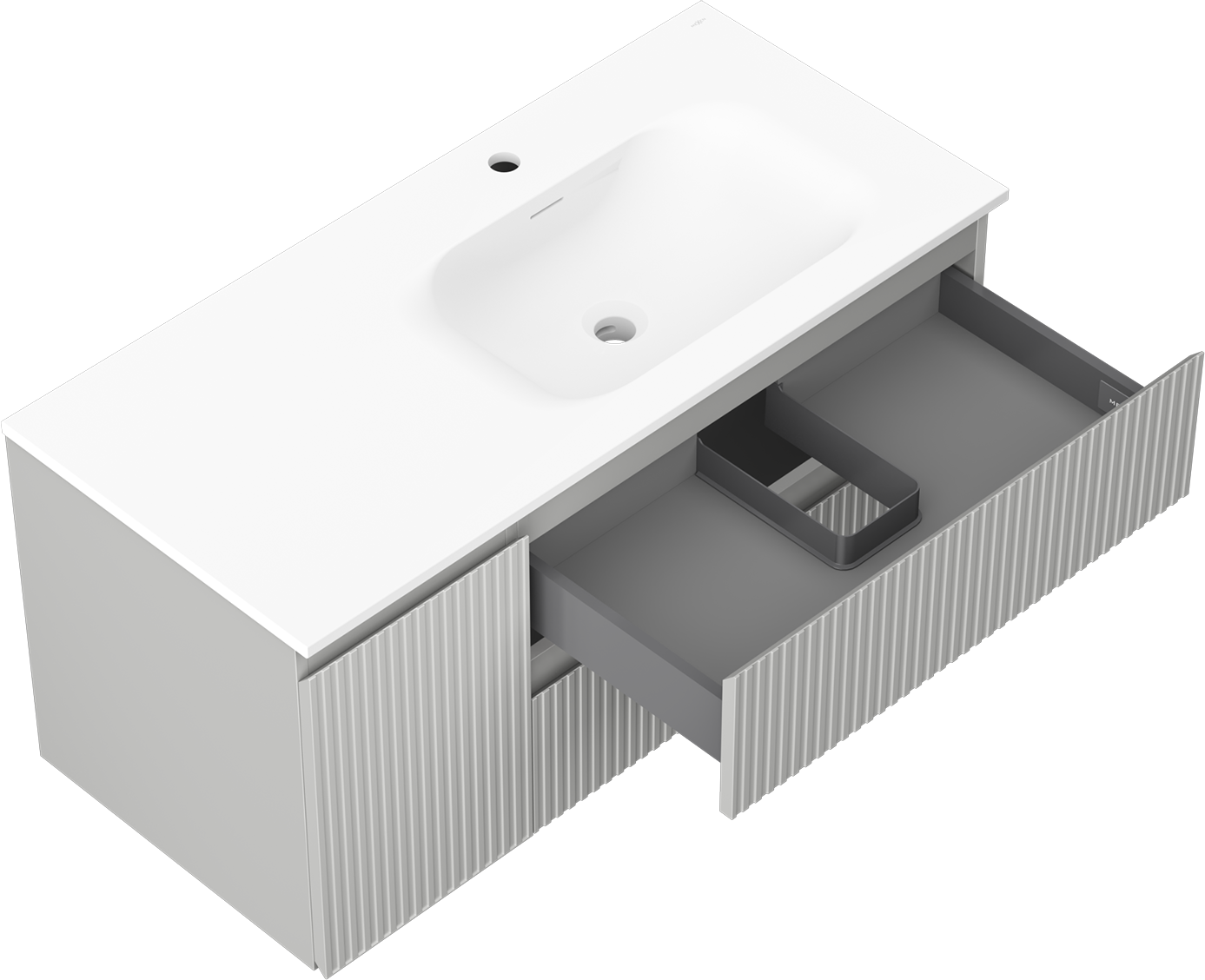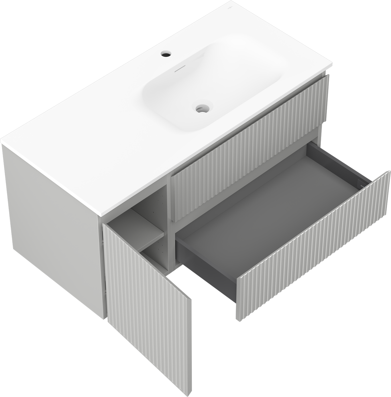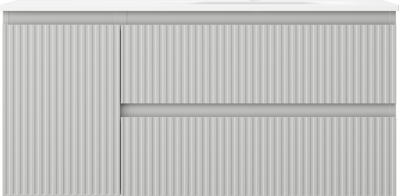 Mexen Rivel szafka łazienkowa 100 cm z umywalką Vela prawą, 2S, 1D, ryflowana, szara/biała mat - 91A23-10047-3-BBFFF62-W23P01