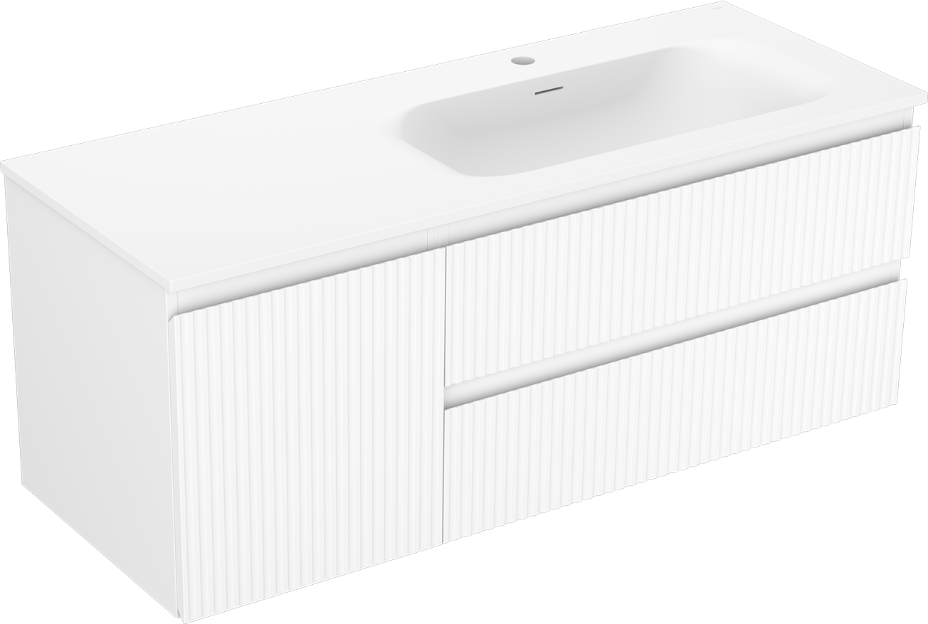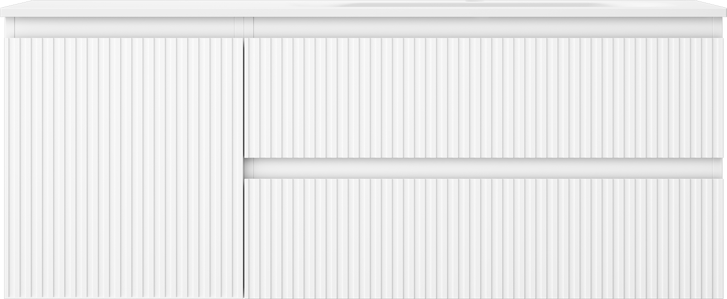 Mexen Rivel szafka łazienkowa 120 cm z umywalką Vela prawą, 2S, 1D, ryflowana, biała mat - 91A23-12047-3-BBFFF01-W23P01
