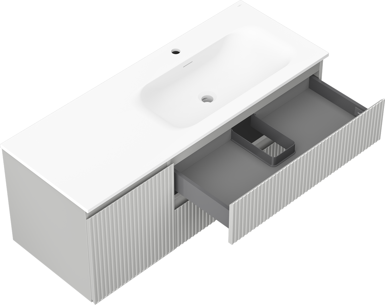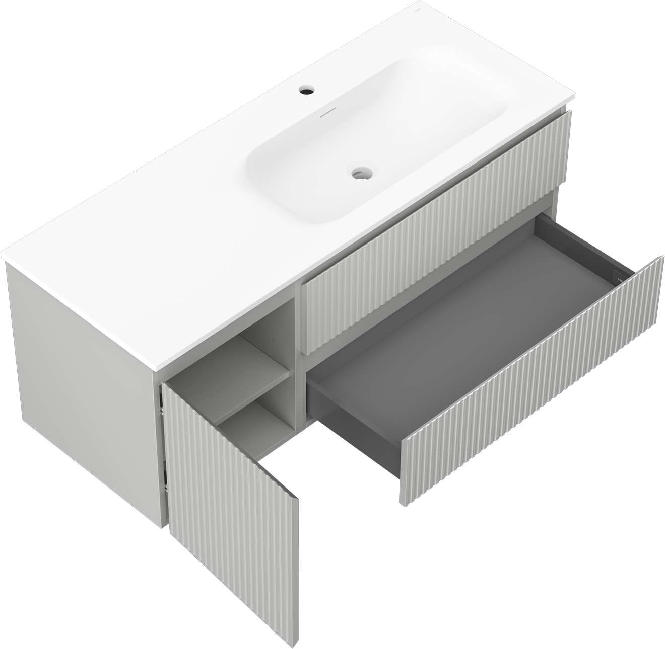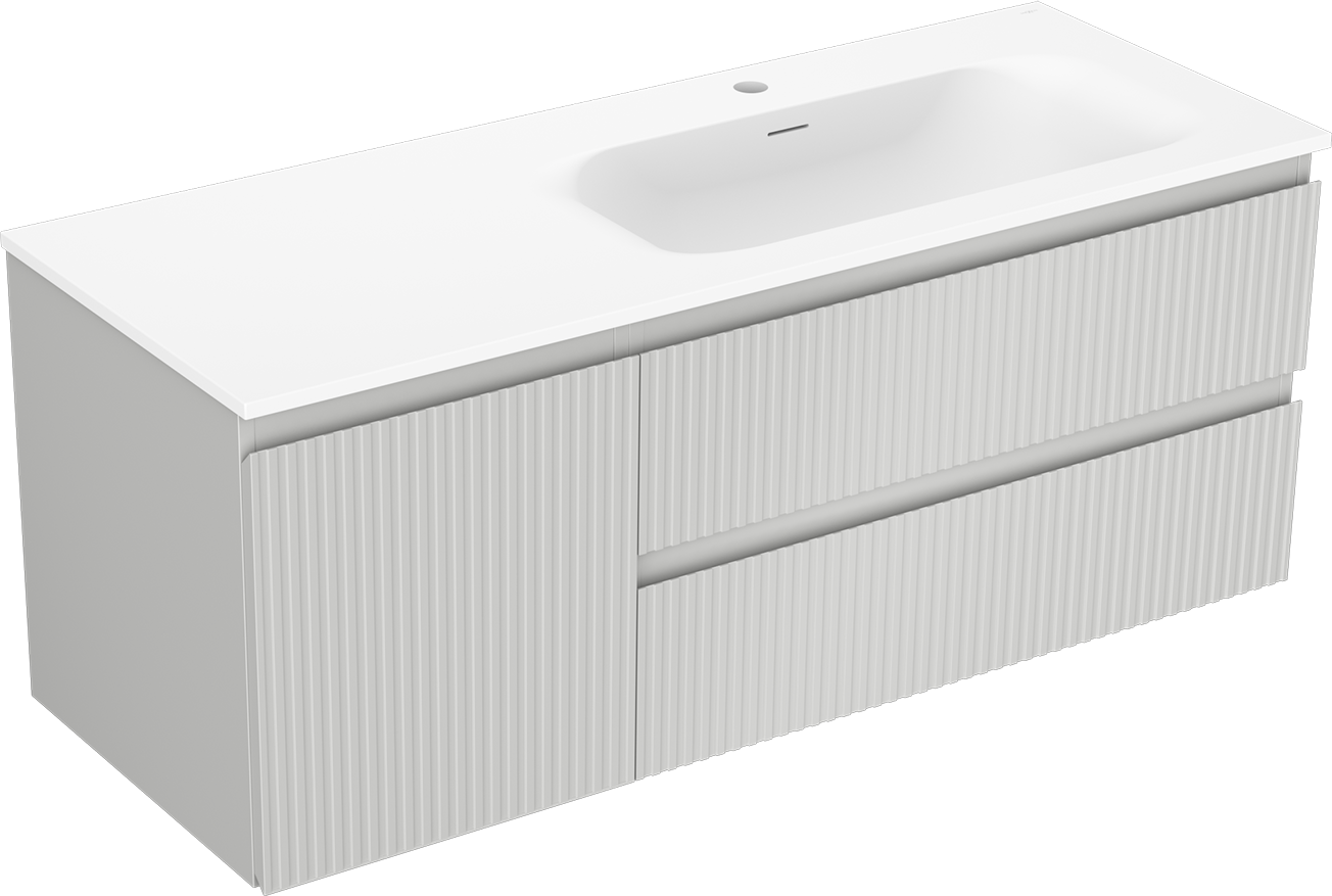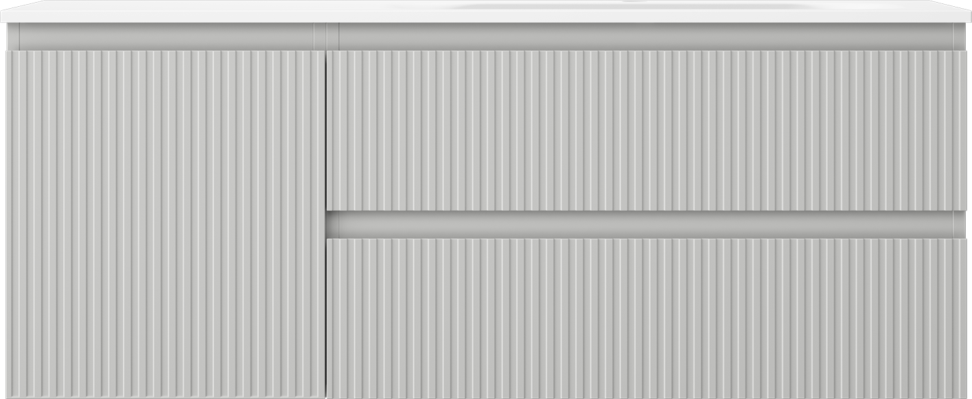 Mexen Rivel szafka łazienkowa 120 cm z umywalką Vela prawą, 2S, 1D, ryflowana, szara/biała mat - 91A23-12047-3-BBFFF62-W23P01
