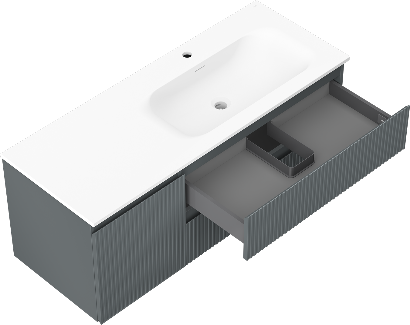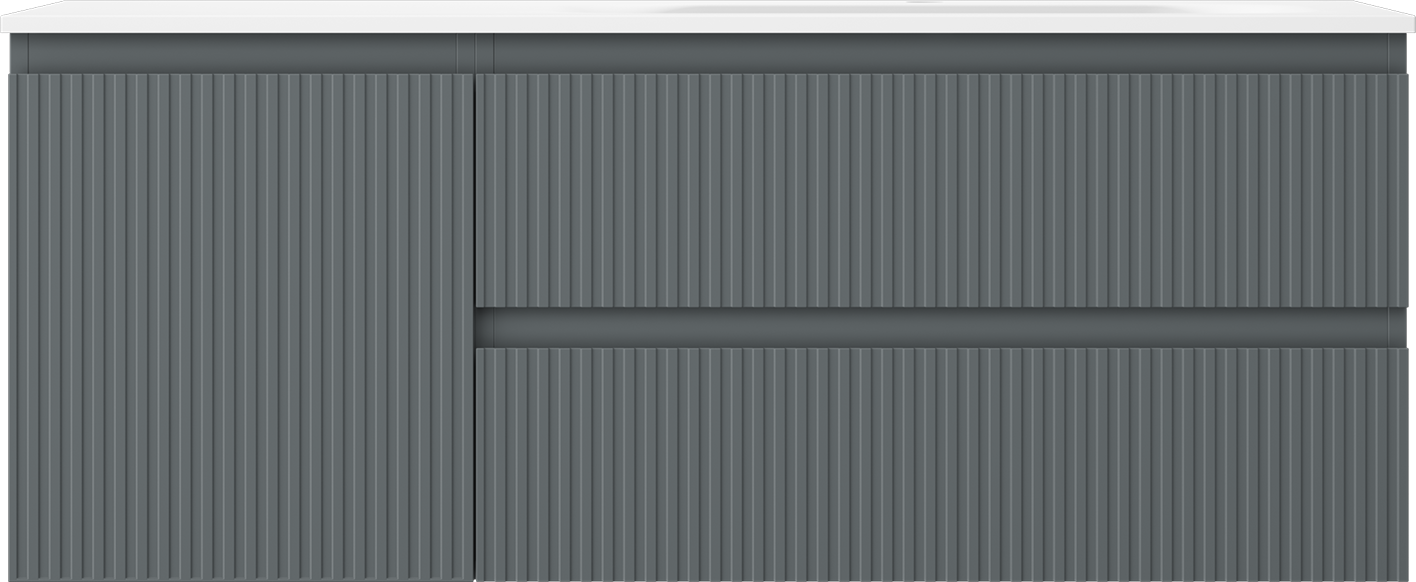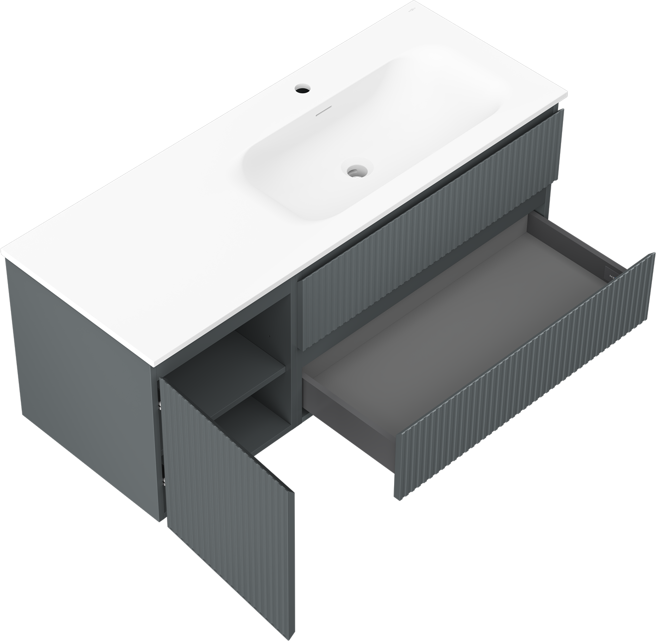Mexen Rivel szafka łazienkowa 120 cm z umywalką Vela prawą, 2S, 1D, ryflowana, grafit/biała mat - 91A23-12047-3-BBFFF66-W23P01