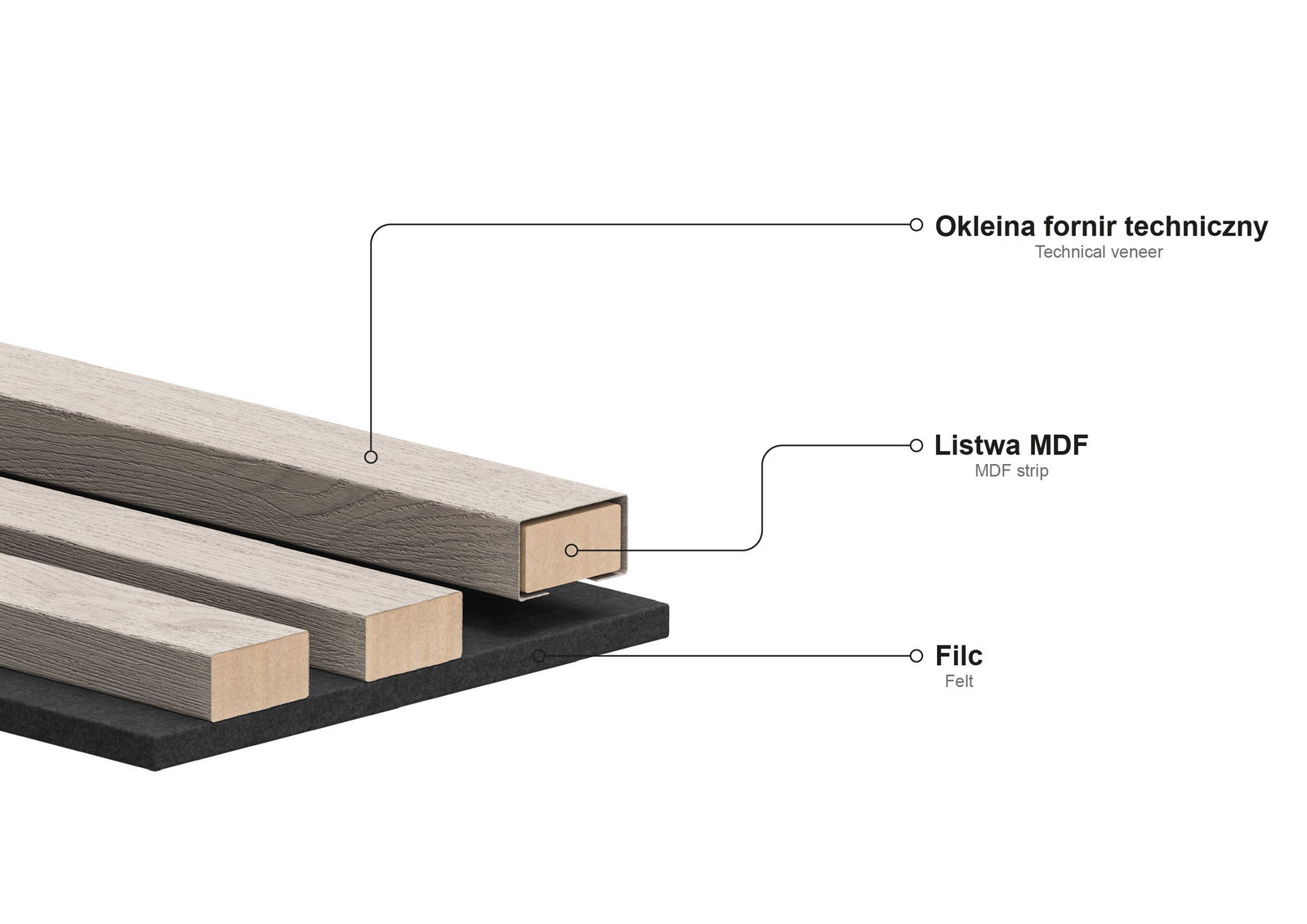 Mexen Lam-F lamele ścienne akustyczne 275 x 30 cm, filc 8 mm, fornir techniczny, Heban Czarny - S105-275307-3015-023