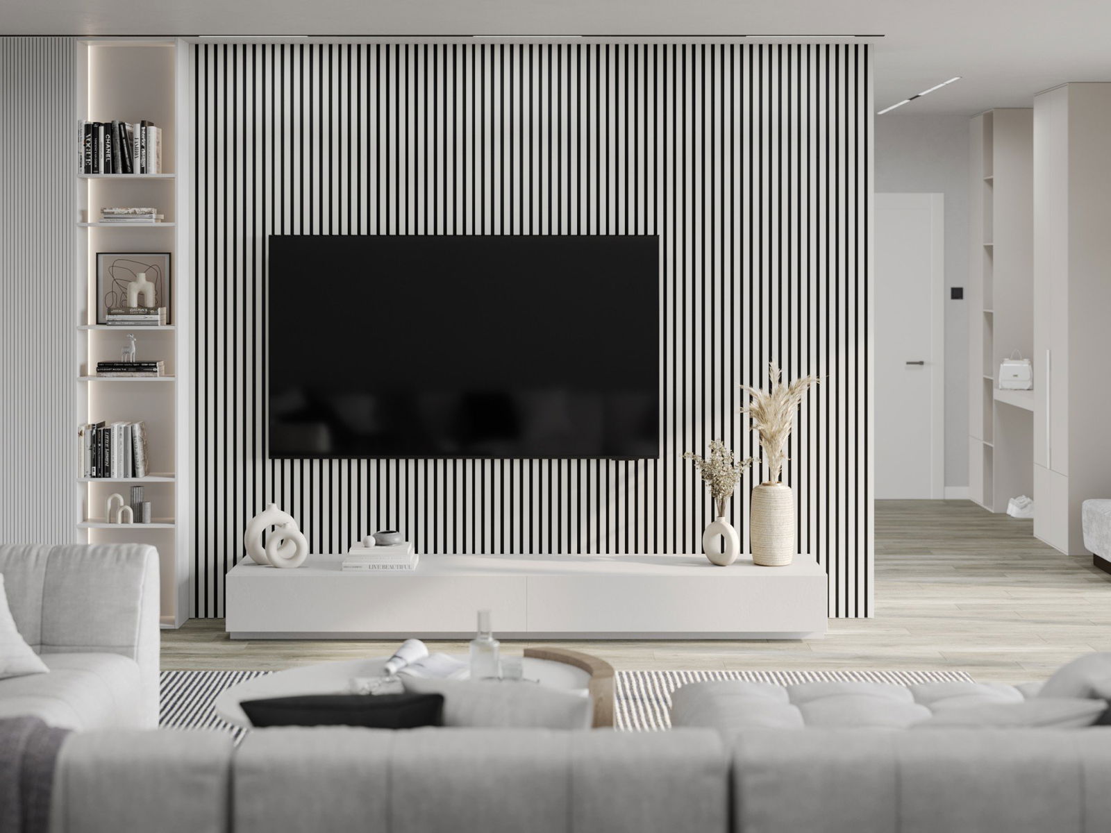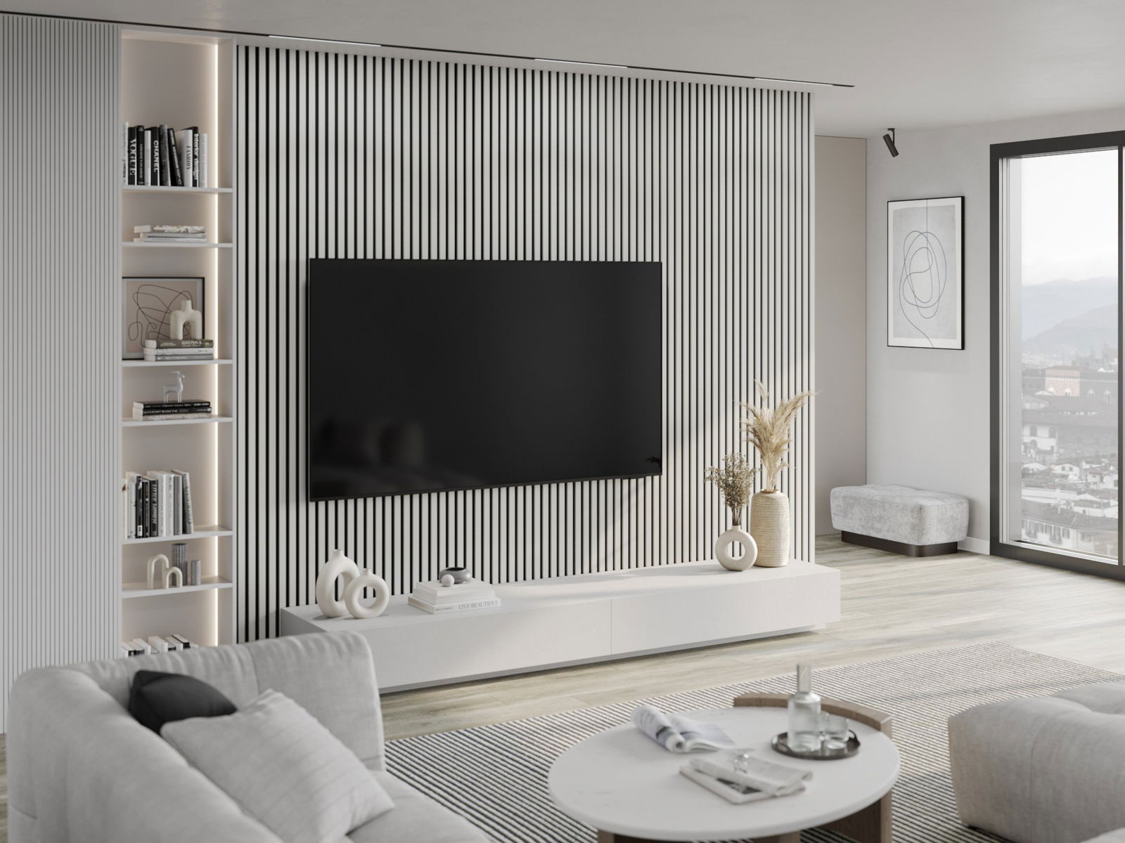 Mexen Lam-F lamele ścienne akustyczne 275 x 31,5 cm, filc 6 mm, Biały Połysk - S105-275317-2812-054