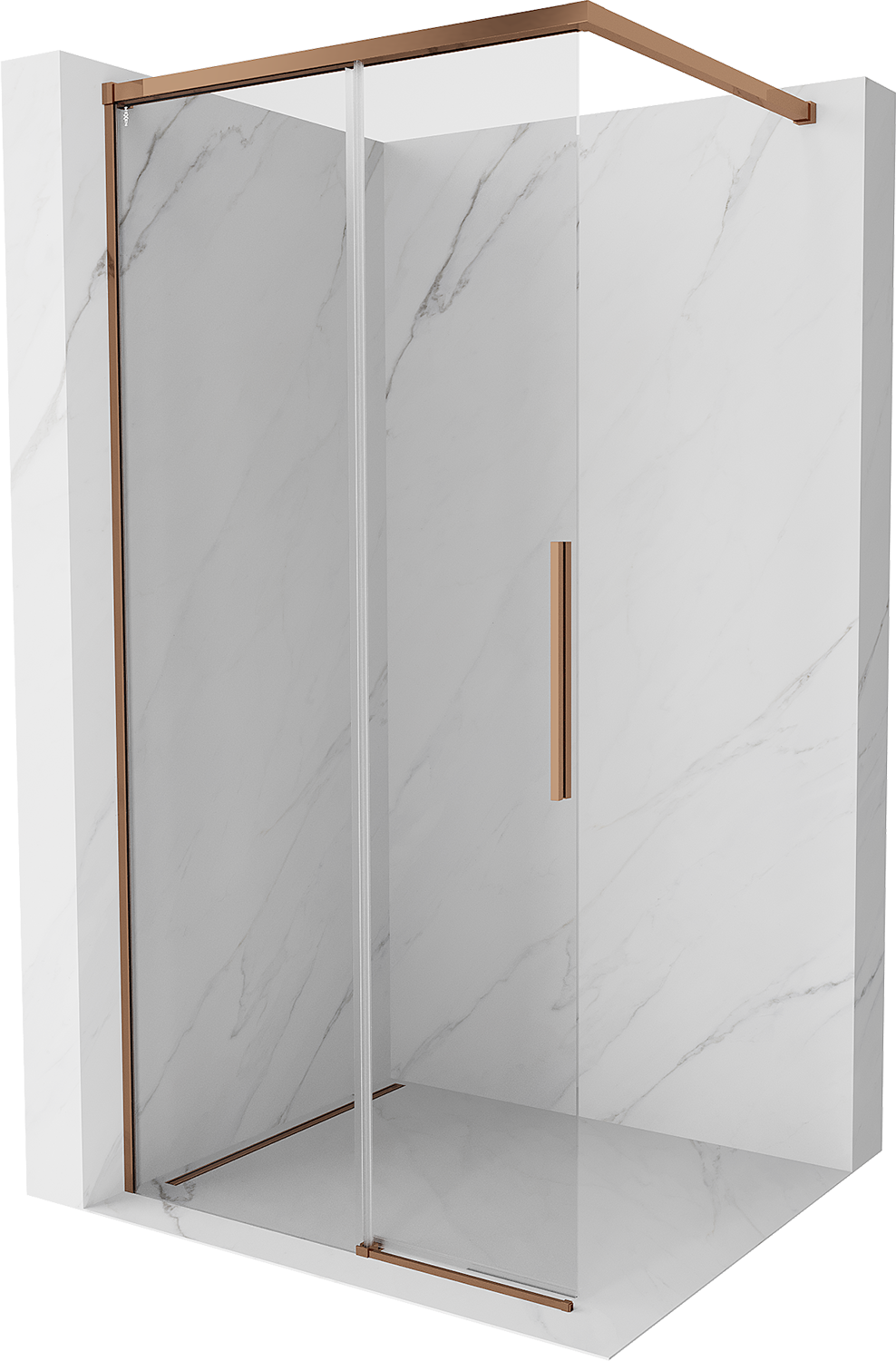 Specyfikacja produktu: Szerokość: 90 cm Wysokość: 200 cm Strona montażu: Uniwersalna Kolor szkła: Transparentne Wykończenie: Różowe złoto Rodzaj szkła: Hartowane Grubość szkła: 8 mm Profil: Aluminiowy Wspornik: Stal nierdzewna Długość max. wspornika: 125 cm Możliwość przycięcia wspornika Powłoka ułatwiająca czyszczenie Dwa systemy mocowania: - Z profilem, który umożliwia niwelacje nierówności ściany - Bez profilu w przypadku idealnie prostych ścian Możliwość montażu na brodziku lub płytkach Niewidoczny mechanizm przesuwania i regulacji drzwi  Suwak gwarantujący cichy bieg drzwi Możliwość odchylenia drzwi w celu wyczyszczenia kabiny Uszczelki elastomerowe odprowadzające wodę Aluminiowy próg uszczelniający drzwi