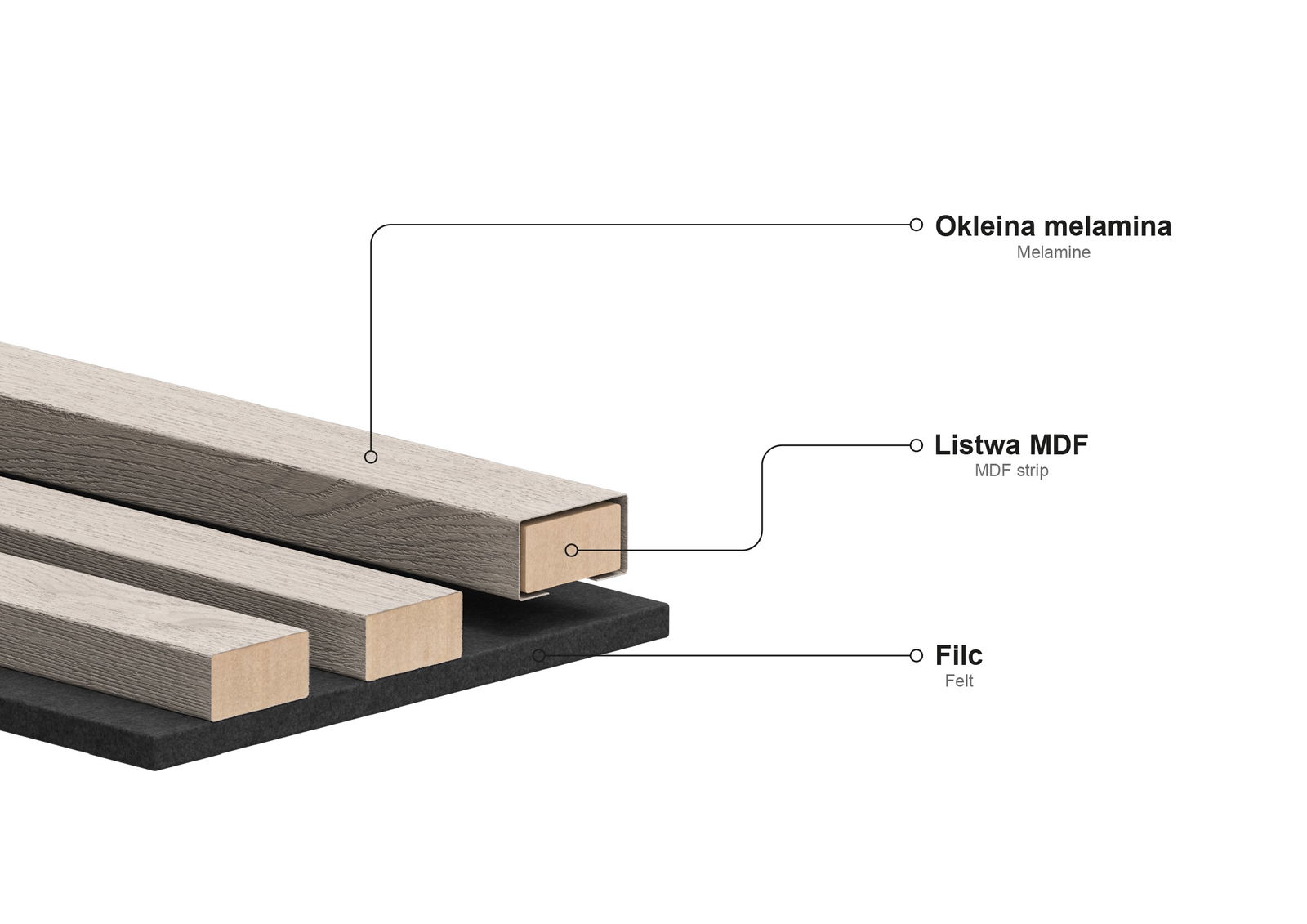 Mexen Lam-F próbka lameli ściennych akustycznych 275 x 31,5 cm, filc 6 mm, Czarny Połysk - S105-055-S