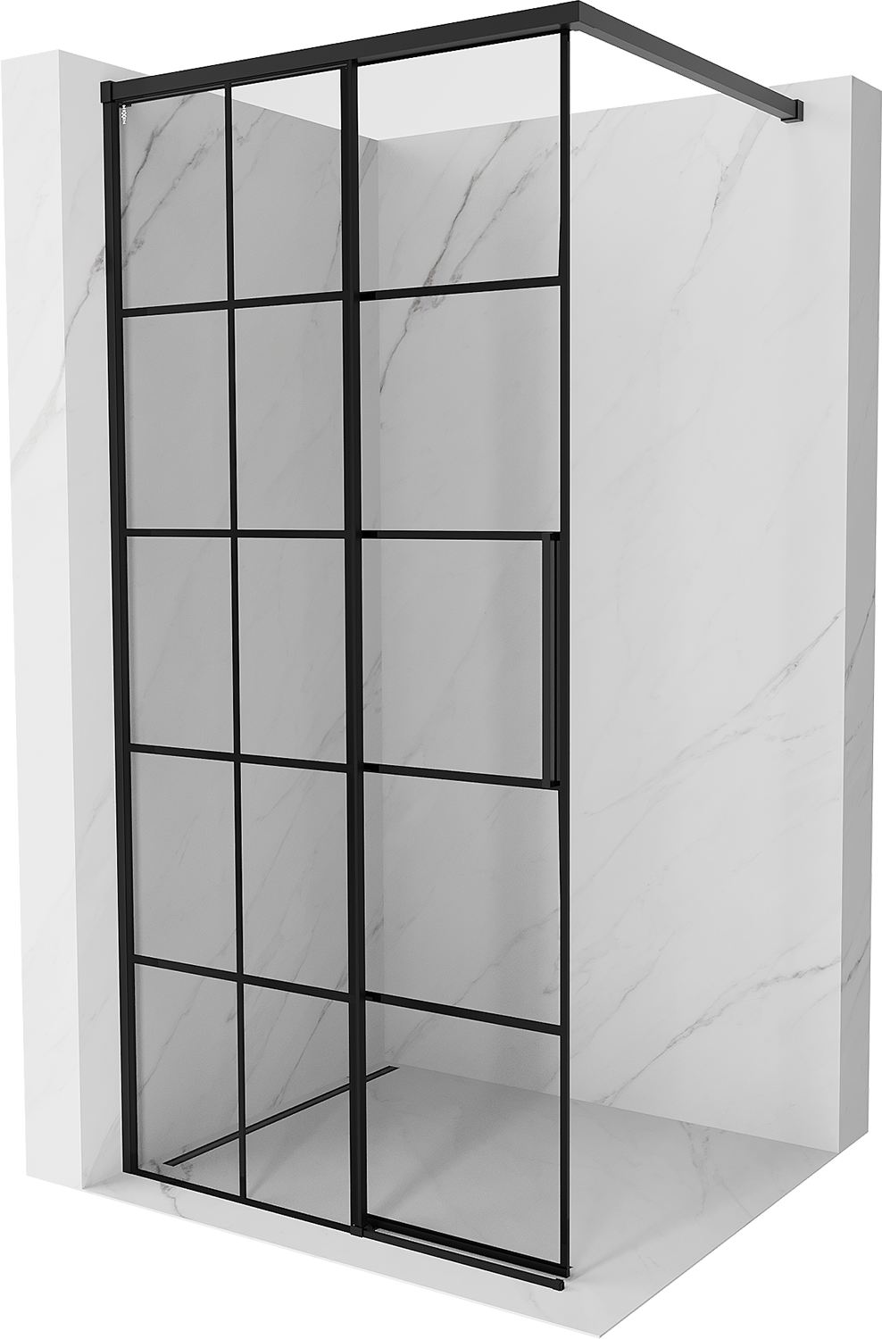 Specyfikacja produktu: Szerokość: 80 cm Wysokość: 200 cm Strona montażu: Lewa Kolor szkła: Czarna kratka Wykończenie: Czarny Rodzaj szkła: Hartowane Grubość szkła: 8 mm Profil: Aluminiowy Wspornik: Stal nierdzewna Długość max. wspornika: 125 cm Możliwość przycięcia wspornika Powłoka ułatwiająca czyszczenie Dwa systemy mocowania: - Z profilem, który umożliwia niwelacje nierówności ściany - Bez profilu w przypadku idealnie prostych ścian Możliwość montażu na brodziku lub płytkach Niewidoczny mechanizm przesuwania i regulacji drzwi  Suwak gwarantujący cichy bieg drzwi Możliwość odchylenia drzwi w celu wyczyszczenia kabiny Uszczelki elastomerowe odprowadzające wodę Aluminiowy próg uszczelniający drzwi
