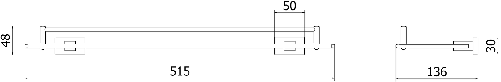 Specyfikacja produktu: Materiał: Metal + Szkło Wykończenie: Miedź szczotkowana Szerokość: 51,5 cm Wysokość: 4,8 cm Odległość od ściany: 13,6 cm