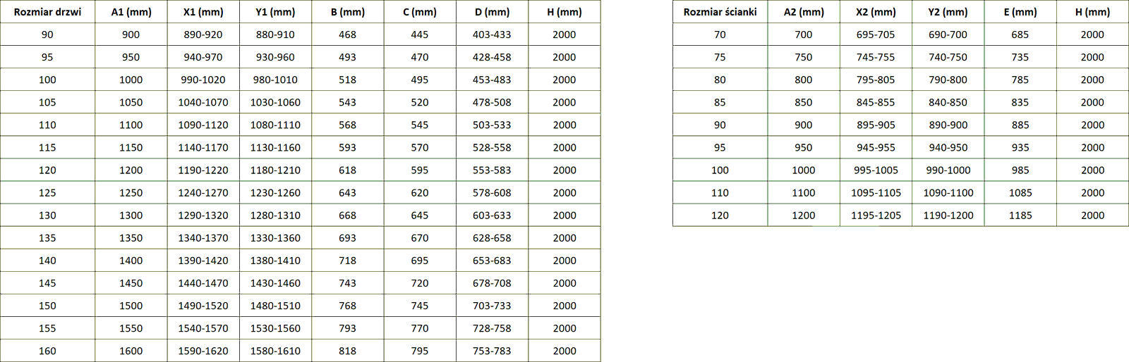 Rozmiar: 100x80 cm (drzwi 100 cm, ścianki 80 cm)