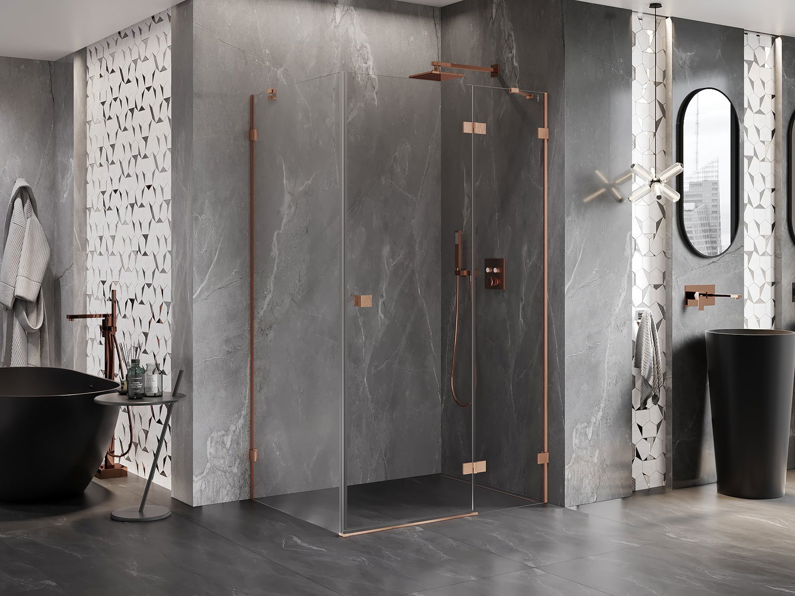 Mexen Lunar kabina prysznicowa uchylna prawa 70 x 80 cm, transparent, miedź szczotkowana - 834-070-080-65-00-P