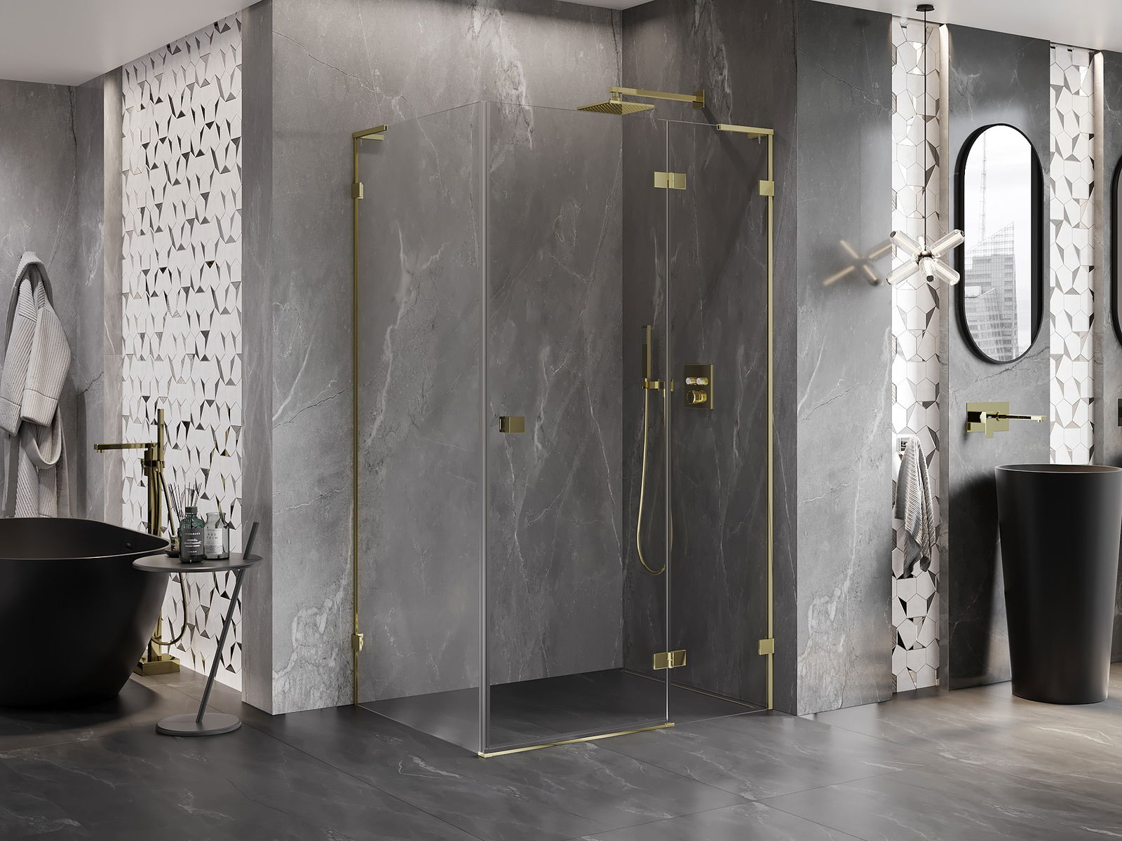 Mexen Lunar L kabina prysznicowa uchylna prawa 75 x 90 cm, transparent, złota - 834L-075-090-50-00-P
