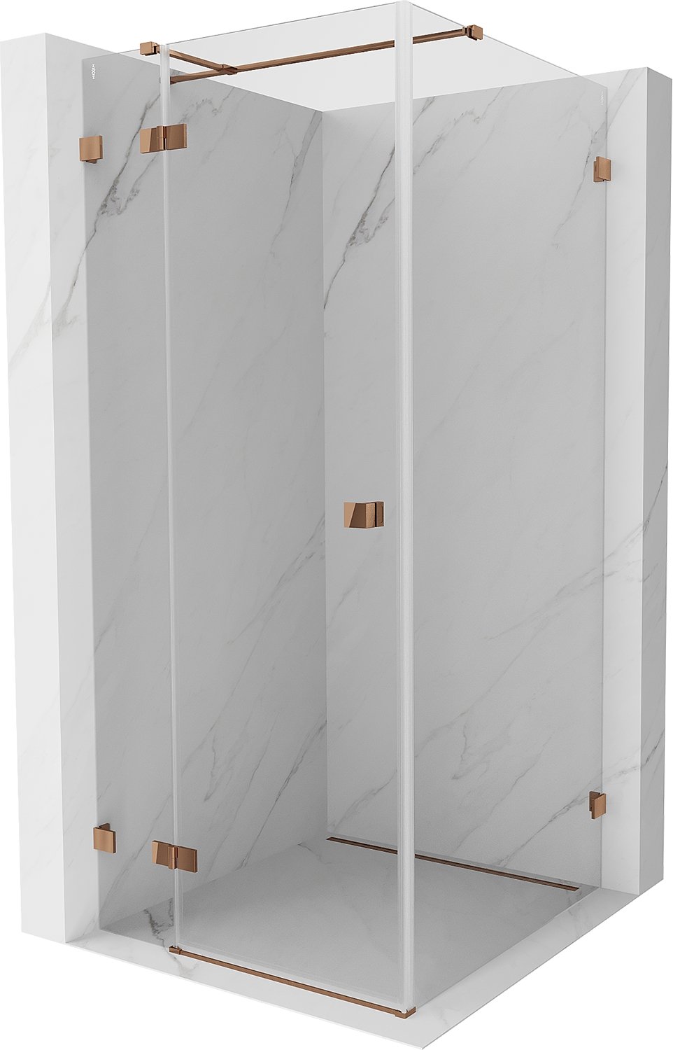 Mexen Lunar T kabina prysznicowa uchylna lewa 80 x 80 cm, transparent, różowe złoto - 834T-080-080-60-00-L