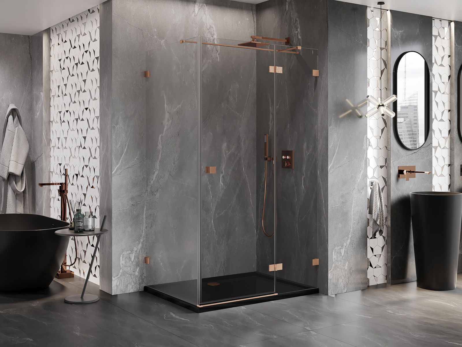 Mexen Lunar T kabina prysznicowa uchylna prawa 75 x 70 cm, transparent, miedź szczotkowana - 834T-075-070-65-00-P