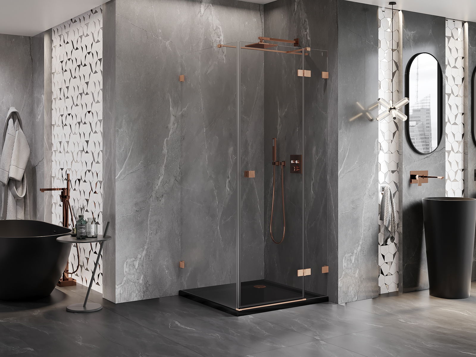 Mexen Lunar T kabina prysznicowa uchylna prawa 90 x 90 cm, transparent, miedź szczotkowana - 834T-090-090-65-00-P