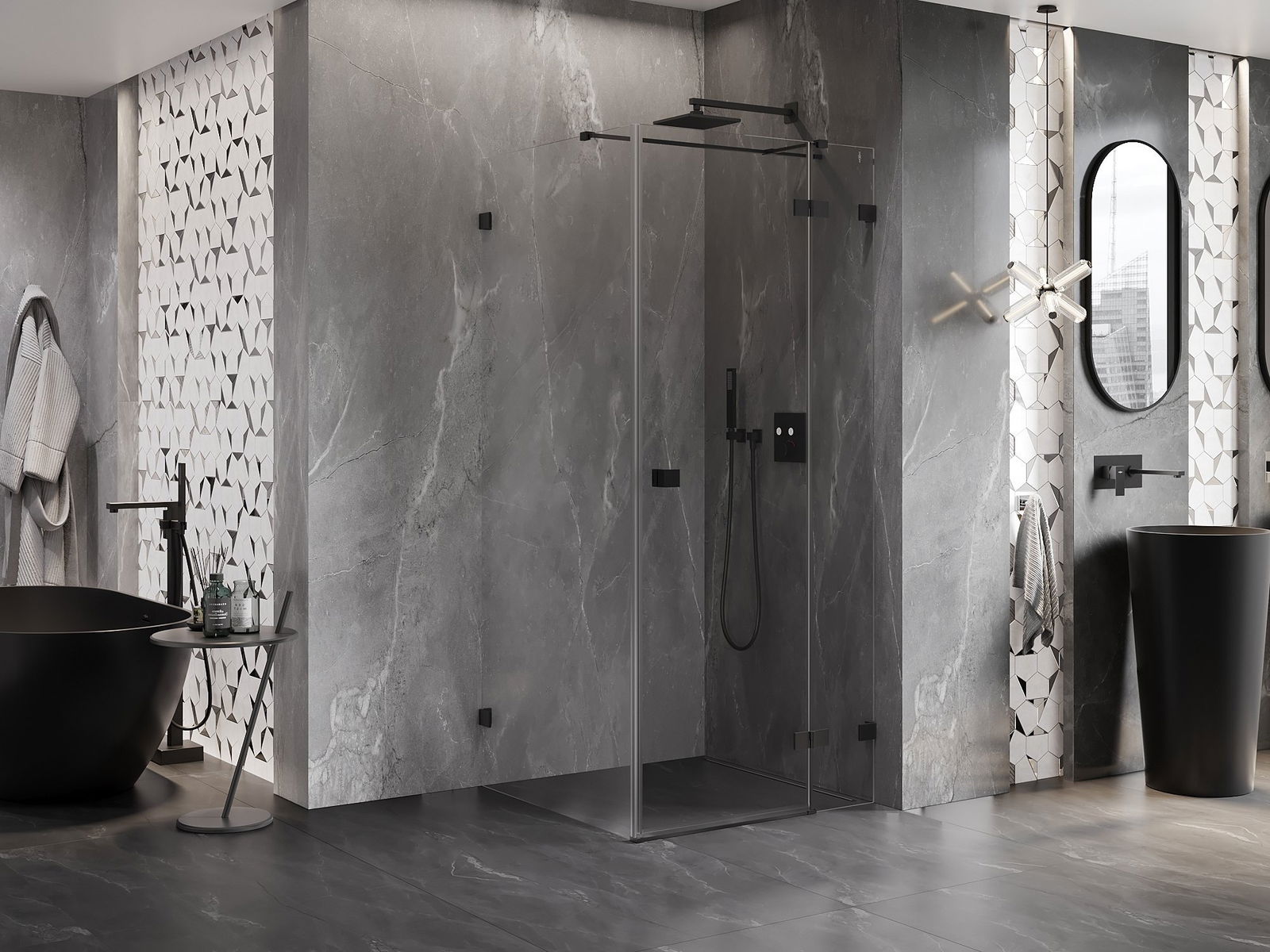 Rozmiar: 90x90 cm (drzwi prawe 90 cm, ścianka 90 cm)