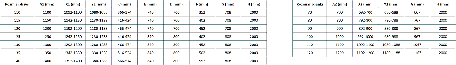 Rozmiar: 80x80 cm (drzwi lewe 80 cm, ścianka 80 cm)