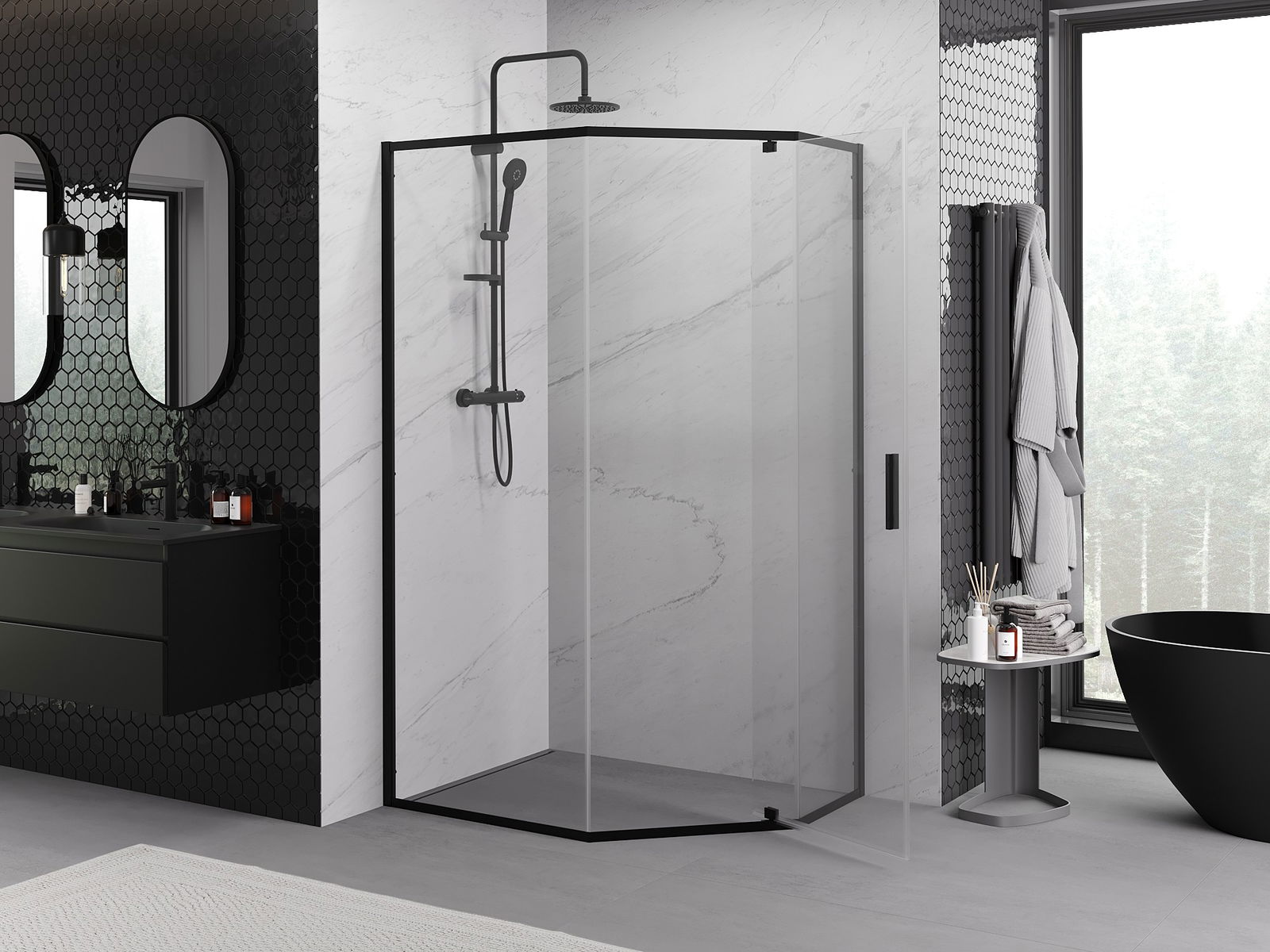 Mexen Exo kabina prysznicowa pięciokątna uchylna 90 x 80 cm, transparent, czarna - 812-090-080-70-00