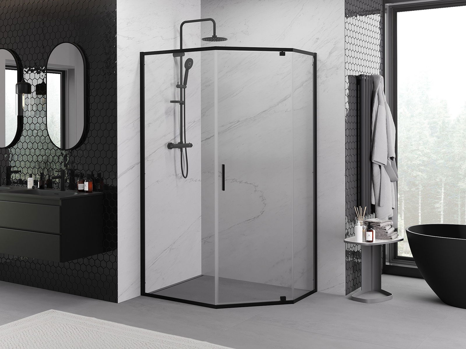 Mexen Exo kabina prysznicowa pięciokątna uchylna 100 x 90 cm, transparent, czarna - 812-100-090-70-00
