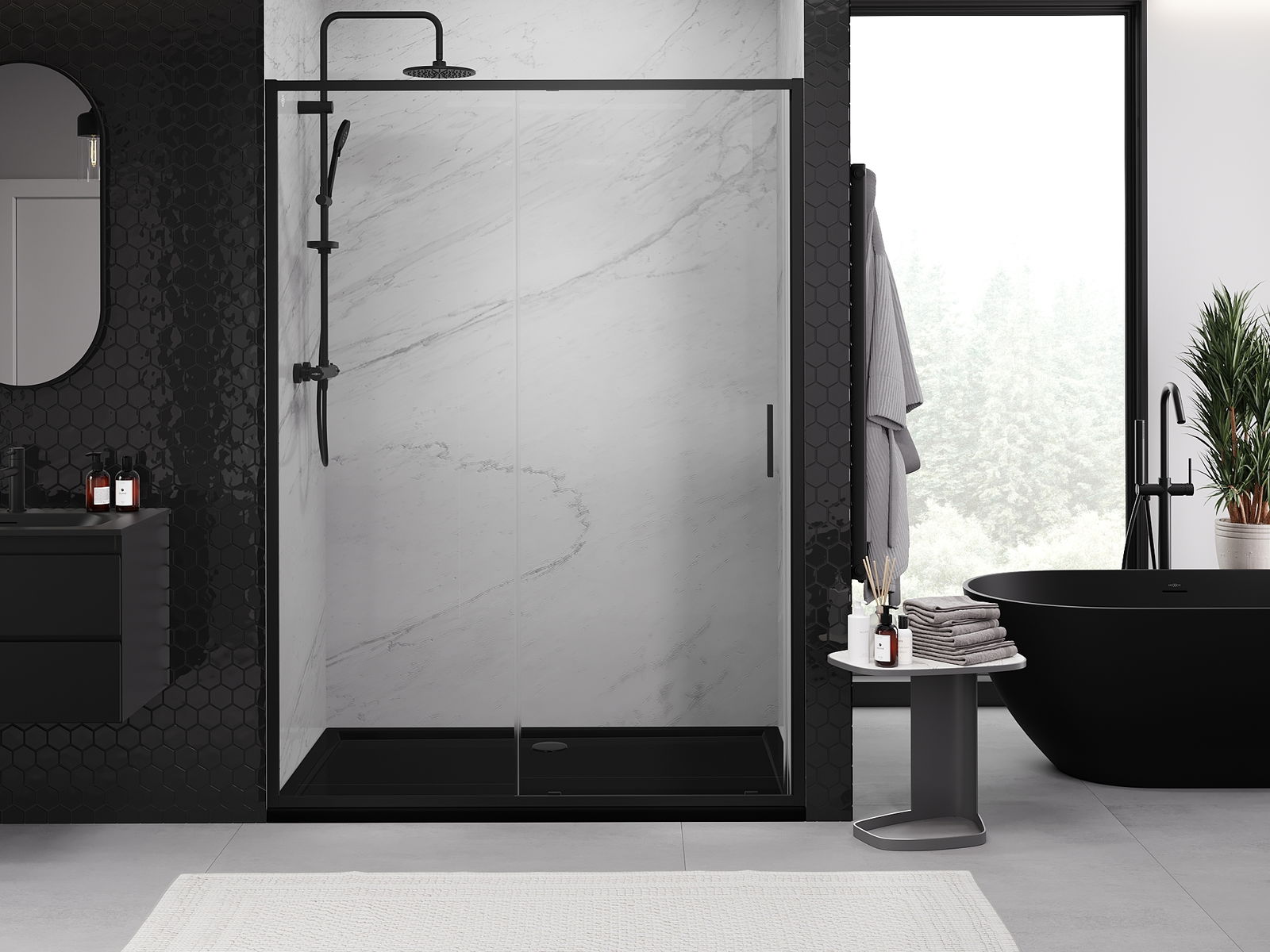 Mexen Exo drzwi prysznicowe rozsuwane 190 cm, transparent, czarne - 8151-190-000-70-00