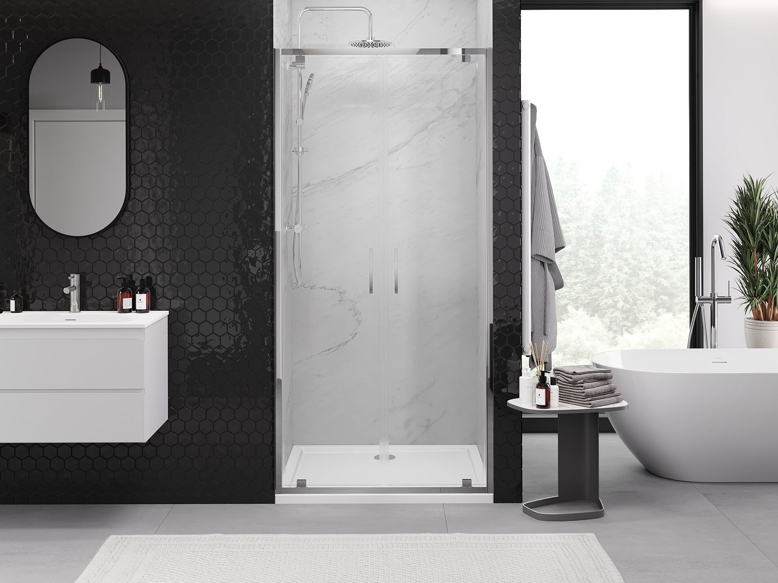 Mexen Exo drzwi prysznicowe podwójne uchylne 110 cm, transparent, chrom - 8182-110-000-01-00