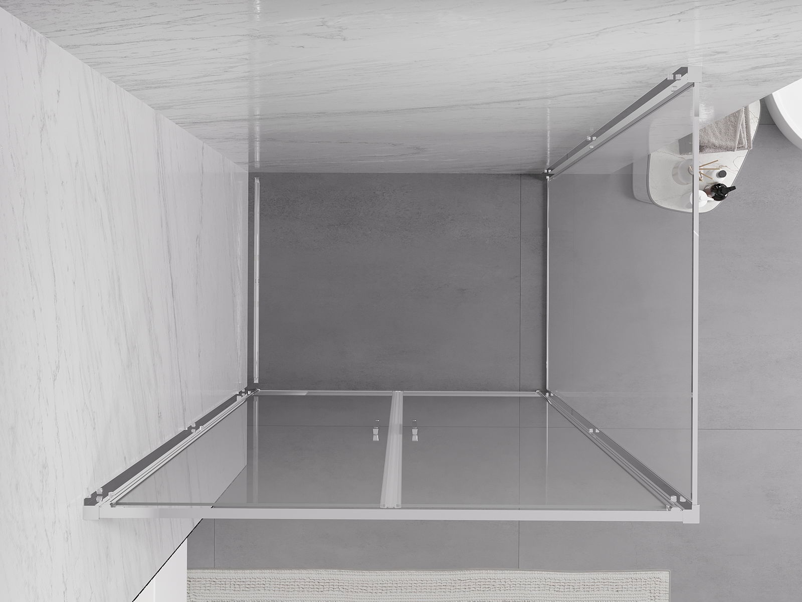 Poręczny i wygodny uchwyt został wykonany z trwałego i odpornego metalu. Modny kształt w połączeniu z wykończeniem dopasowanym do koloru profili nadaje całości nowoczesnego i stylowego wyglądu, podkreślając estetykę każdej łazienki.