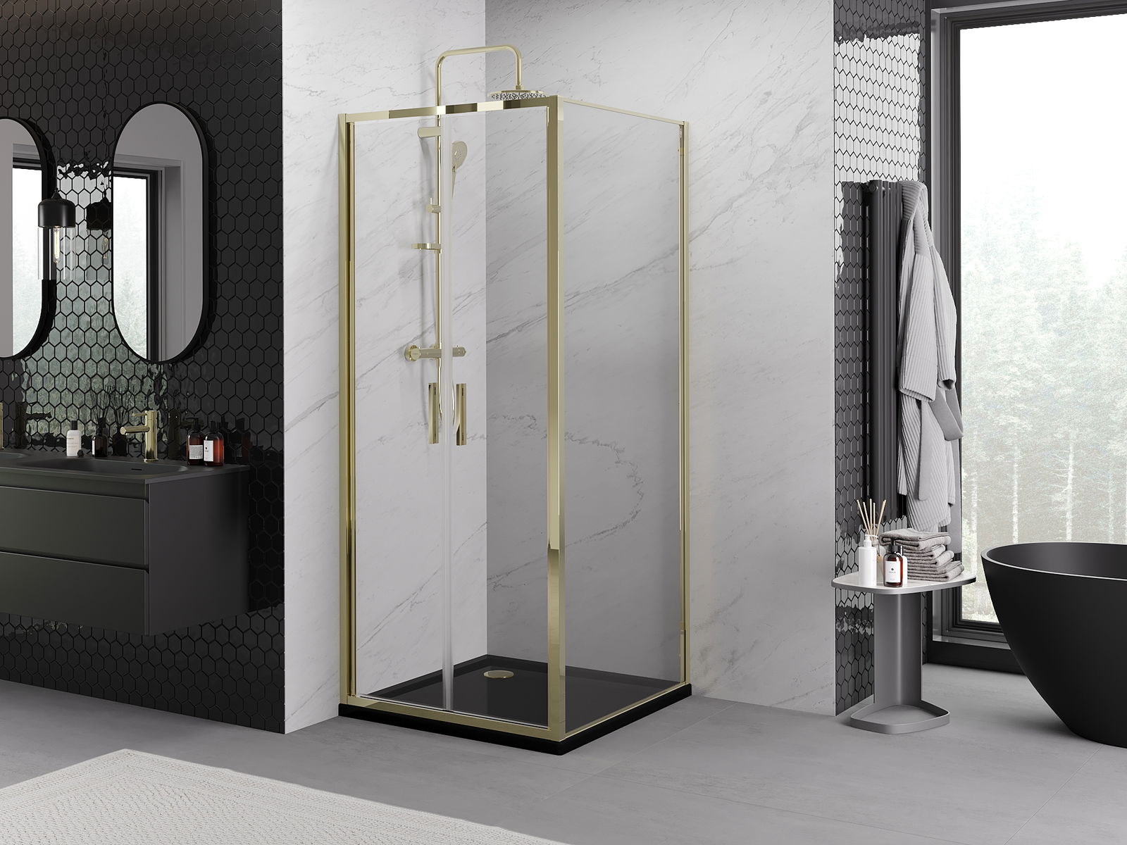 Poręczny i wygodny uchwyt został wykonany z trwałego i odpornego metalu. Modny kształt w połączeniu z wykończeniem dopasowanym do koloru profili nadaje całości nowoczesnego i stylowego wyglądu, podkreślając estetykę każdej łazienki.