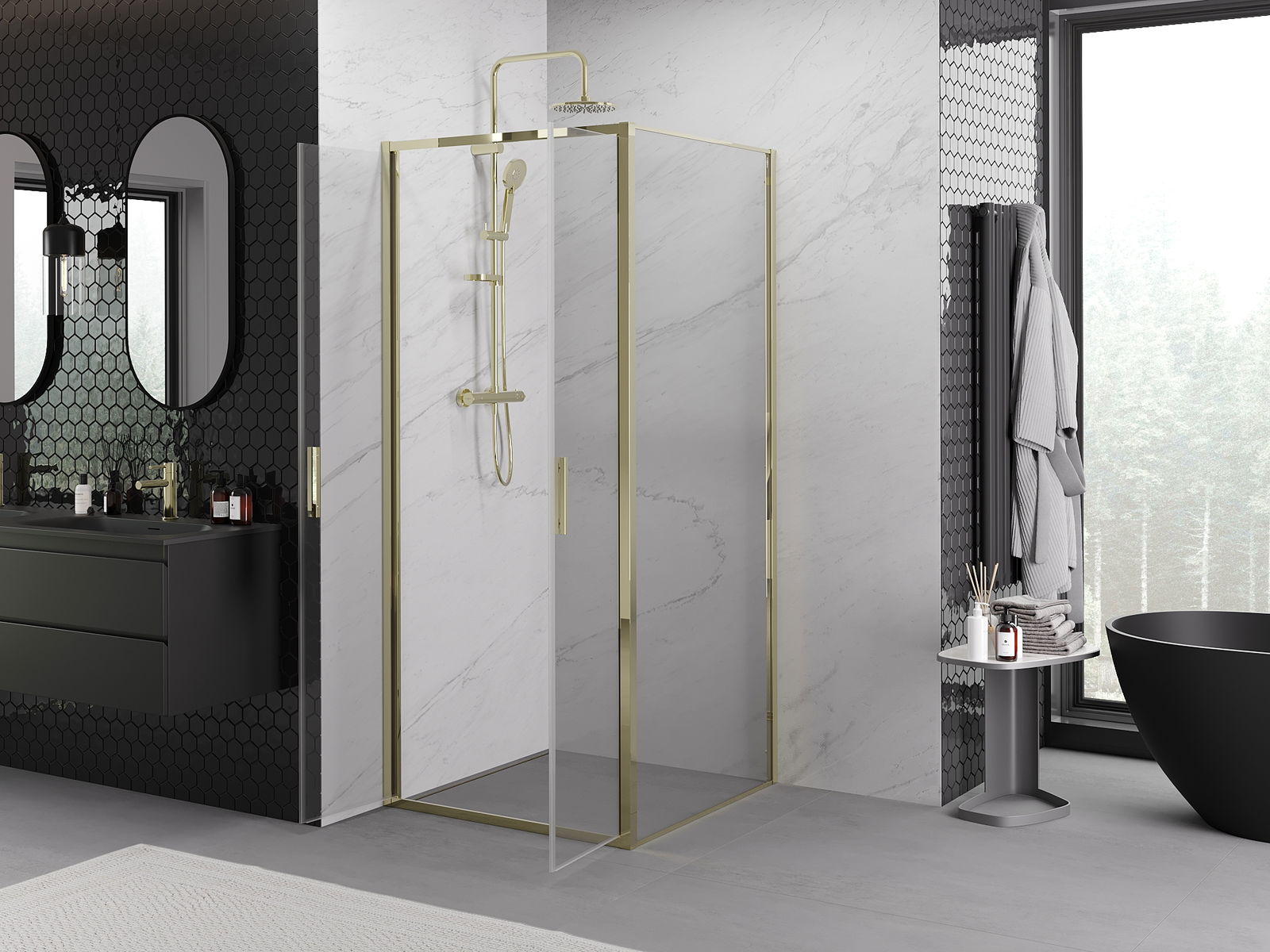 Mexen Exo kabina prysznicowa uchylna 120 x 120 cm, transparent, złota - 814-120-120-50-00