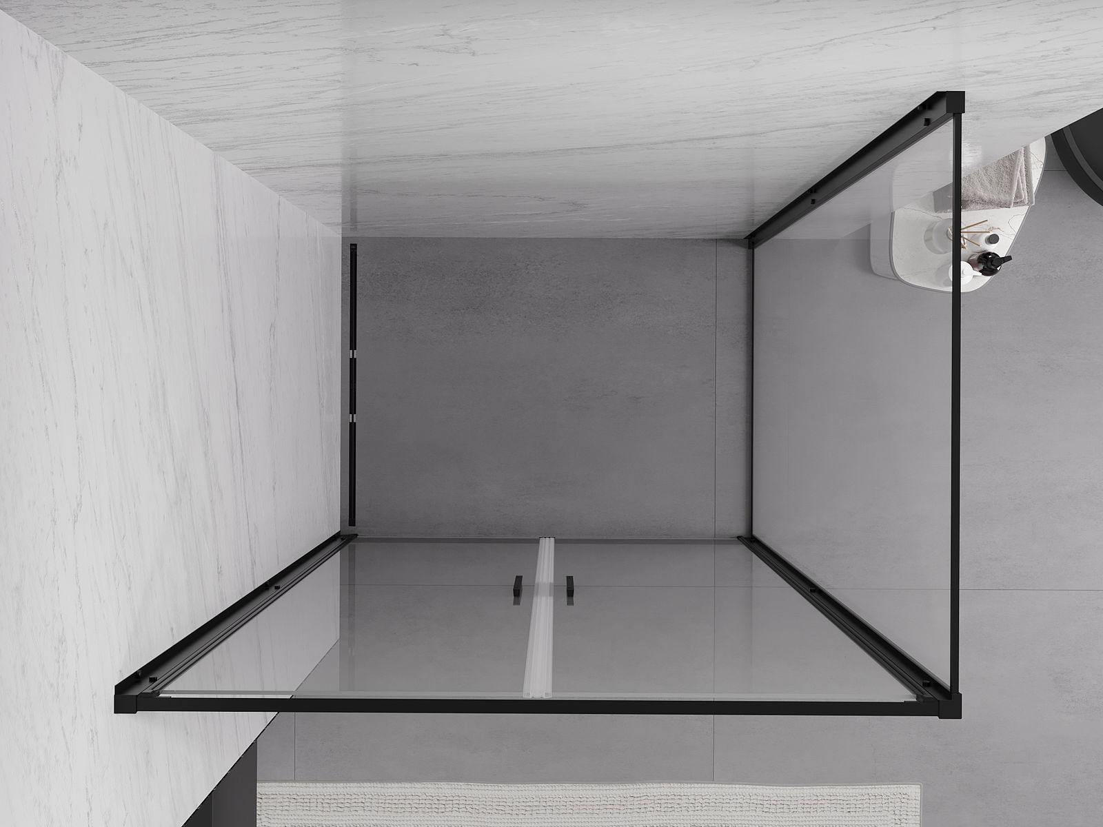 Poręczny i wygodny uchwyt został wykonany z trwałego i odpornego metalu. Modny kształt w połączeniu z wykończeniem dopasowanym do koloru profili nadaje całości nowoczesnego i stylowego wyglądu, podkreślając estetykę każdej łazienki.