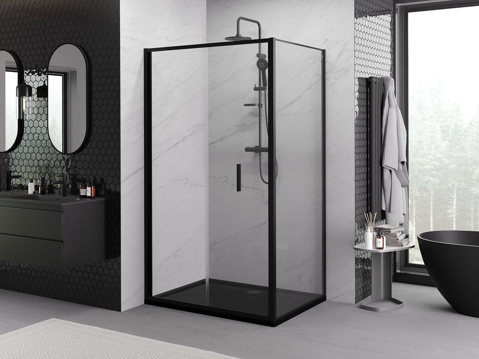 Mexen Rio kabina prysznicowa kwadratowa 90 x 90 cm, transparent, czarna - 860-090-090-70-00
