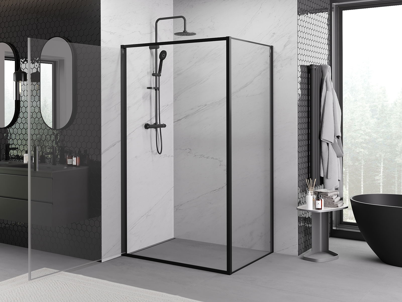 Poręczny i wygodny uchwyt został wykonany z trwałego i odpornego metalu. Modny kształt w połączeniu z wykończeniem dopasowanym do koloru profili nadaje całości nowoczesnego i stylowego wyglądu, podkreślając estetykę każdej łazienki.