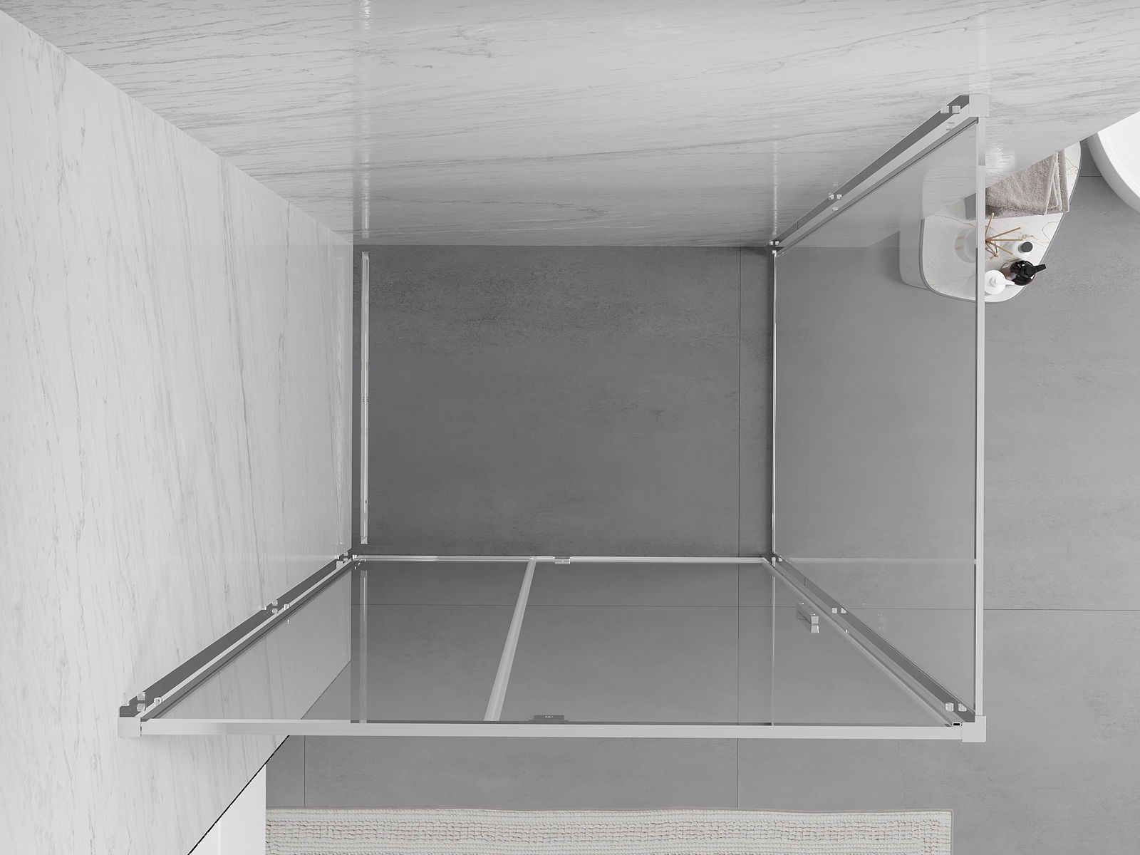 Poręczny i wygodny uchwyt został wykonany z trwałego i odpornego metalu. Modny kształt w połączeniu z wykończeniem dopasowanym do koloru profili nadaje całości nowoczesnego i stylowego wyglądu, podkreślając estetykę każdej łazienki.