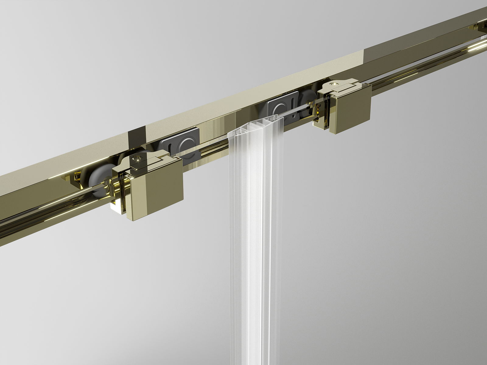 Drzwi przesuwne poruszają się po specjalnych prowadnicach i nie wymagają dodatkowej przestrzeni, żeby je otworzyć, dlatego sprawdzą się w mniejszych łazienkach. Dzięki podwójnym rolkom z metalowym korpusem ich ruch jest płynny.