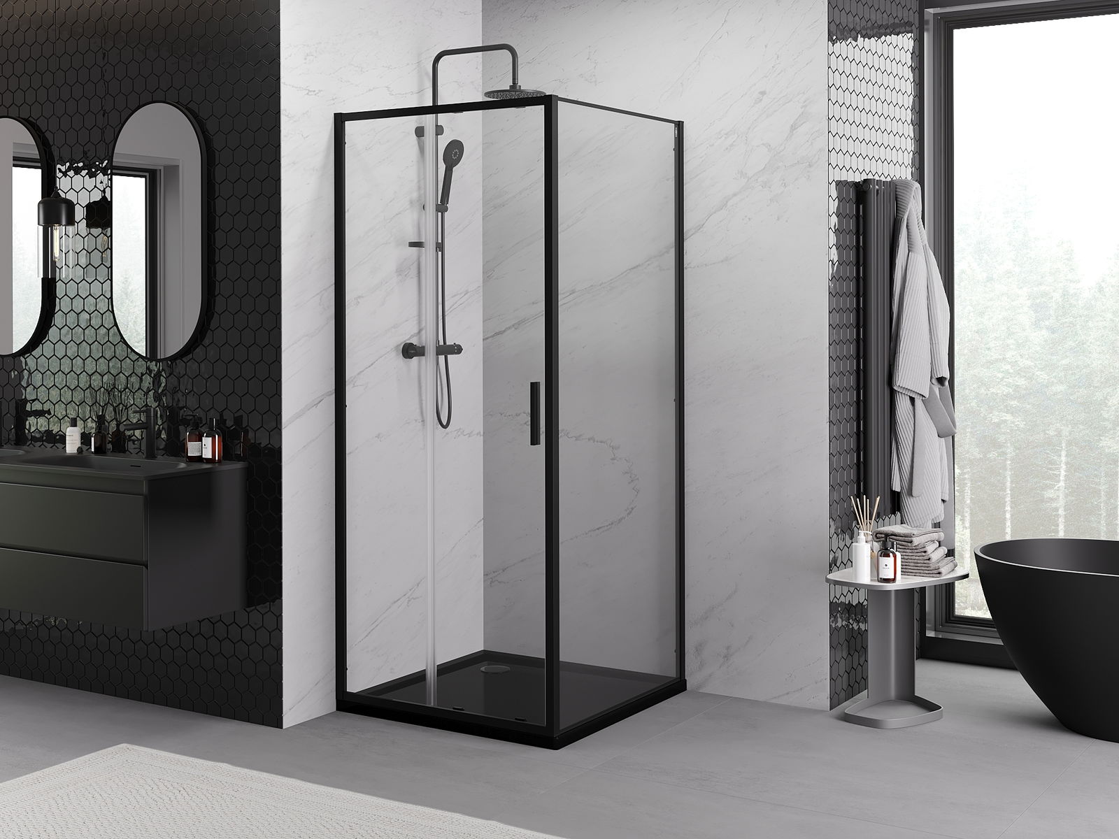 Mexen Exo kabina prysznicowa rozsuwana 110 x 110 cm, transparent, czarna - 8151-110-110-70-00