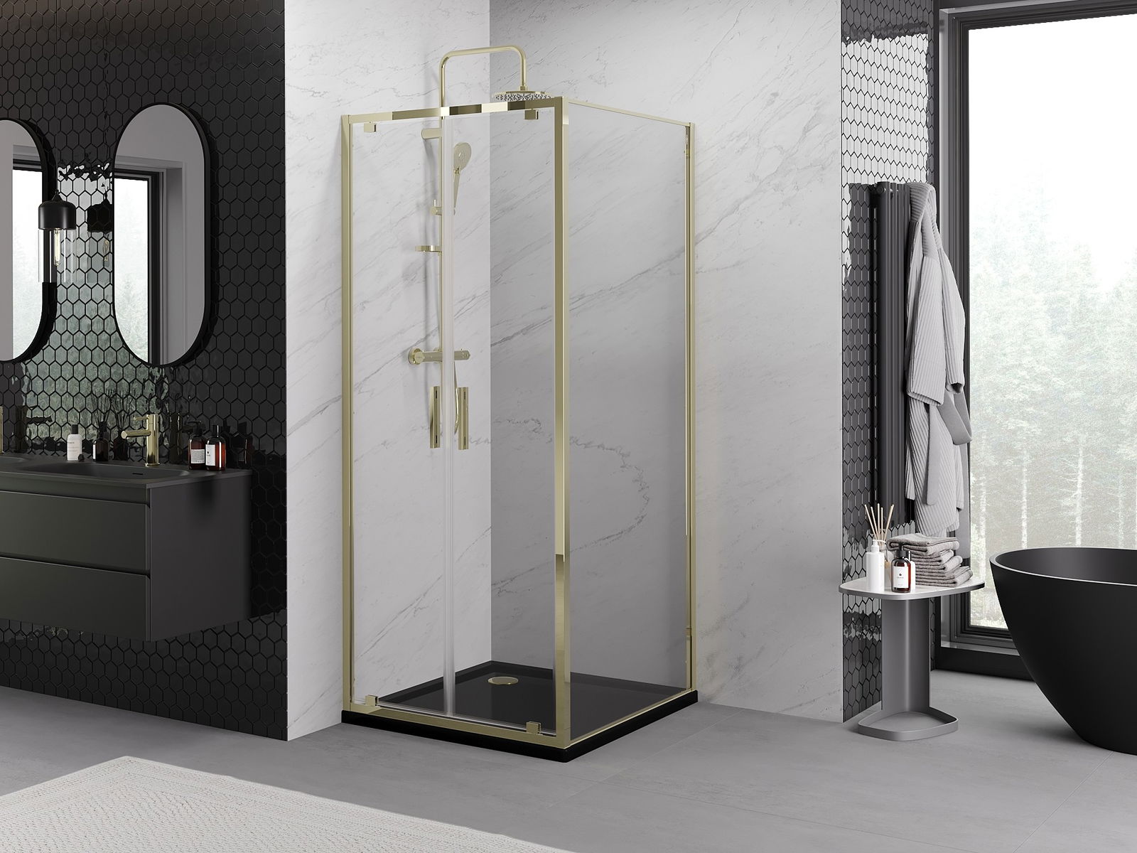 Mexen Exo kabina prysznicowa uchylna 110 x 110 cm, transparent, złota - 8182-110-110-50-00