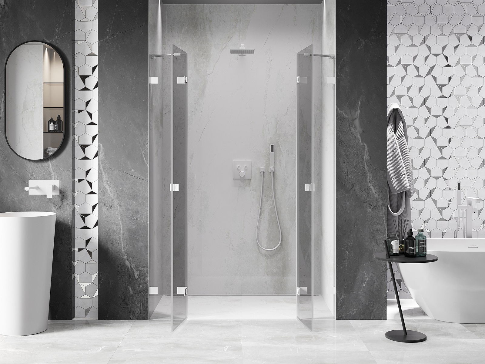 Klamry i zawiasy zostały wykonane z bardzo trwałego mosiądzu, a dodatkowo tworzą zlicowaną taflę szkła. Jest to doskonały wybór, który łączy elegancję, trwałość i nowoczesny design. Dzięki takim rozwiązaniom prysznic zyskuje na estetyce, a jednocześnie ułatwiają utrzymanie czystości.