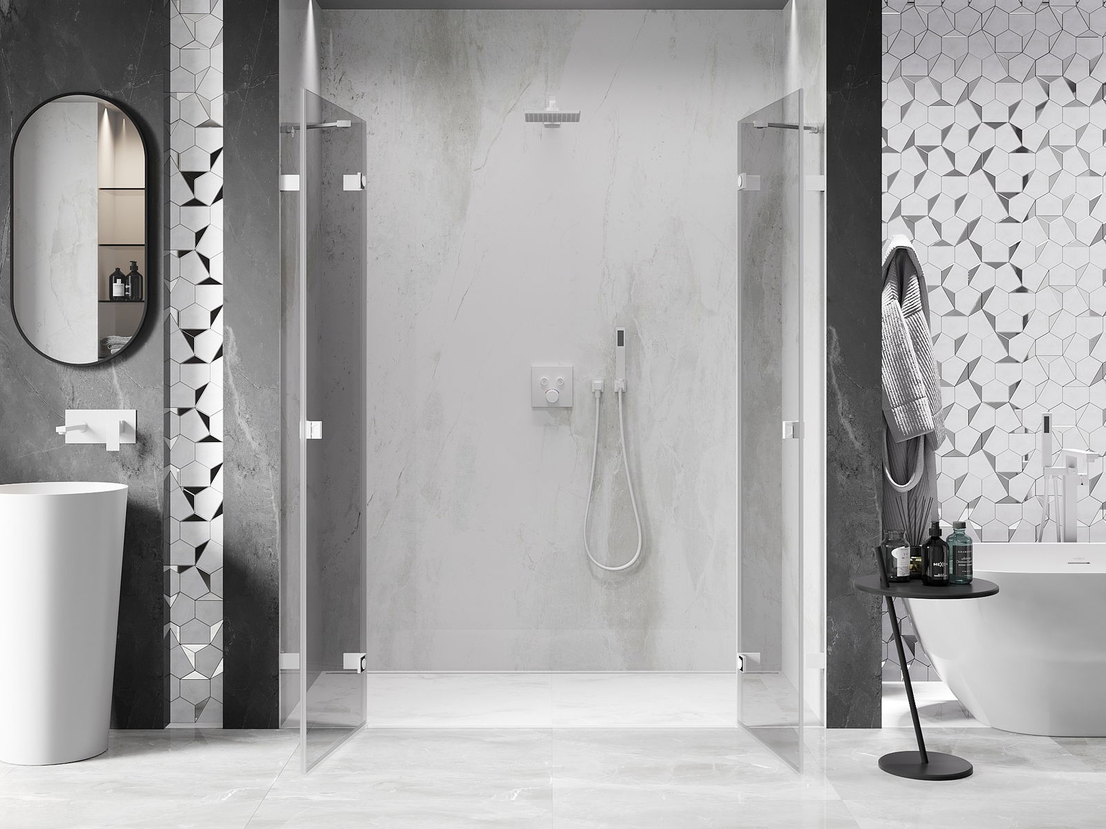 Klamry i zawiasy zostały wykonane z bardzo trwałego mosiądzu, a dodatkowo tworzą zlicowaną taflę szkła. Jest to doskonały wybór, który łączy elegancję, trwałość i nowoczesny design. Dzięki takim rozwiązaniom prysznic zyskuje na estetyce, a jednocześnie ułatwiają utrzymanie czystości.
