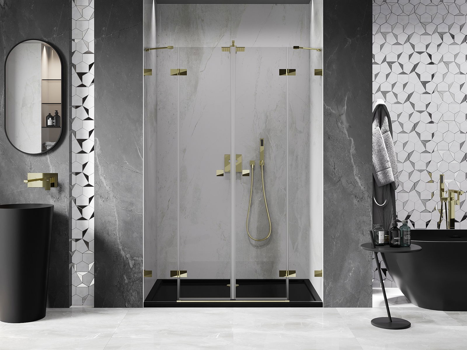 Mexen Lunar Duo drzwi prysznicowe uchylne 150 cm, transparent, złote - 834D-150-000-50-00