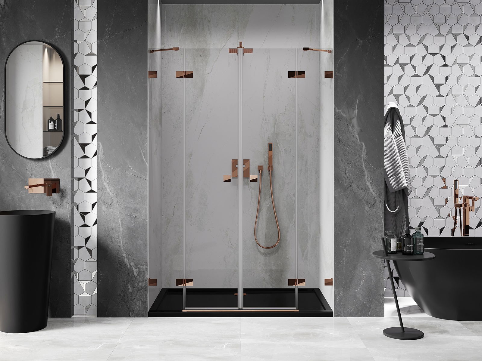 • Mexen Lunar Duo drzwi prysznicowe uchylne 140 cm, transparent, różowe złoto - 834D-140-000-60-00