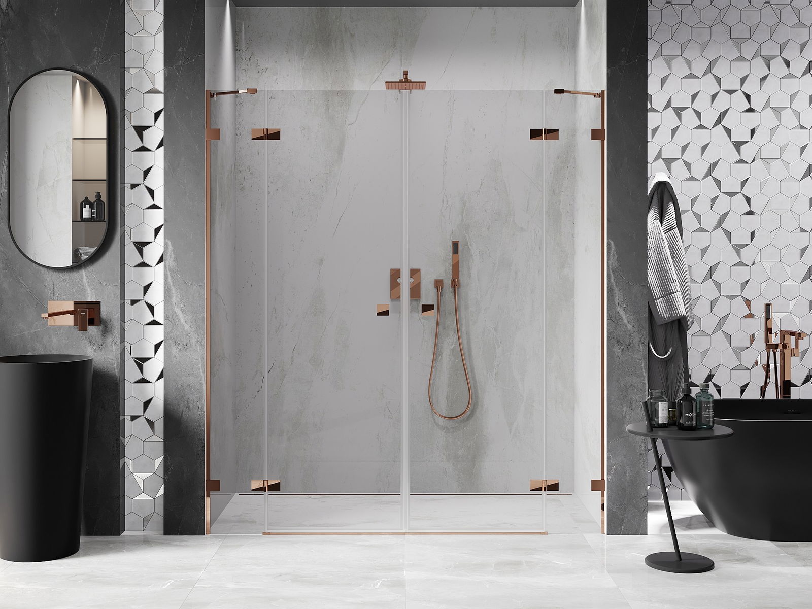 • Mexen Lunar Duo drzwi prysznicowe uchylne 200 cm, transparent, różowe złoto - 834D-200-000-60-00
