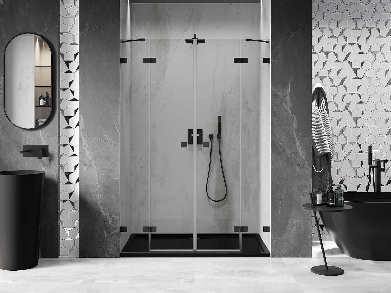 Mexen Lunar Duo drzwi prysznicowe uchylne 140 cm, transparent, czarne - 834D-140-000-70-00