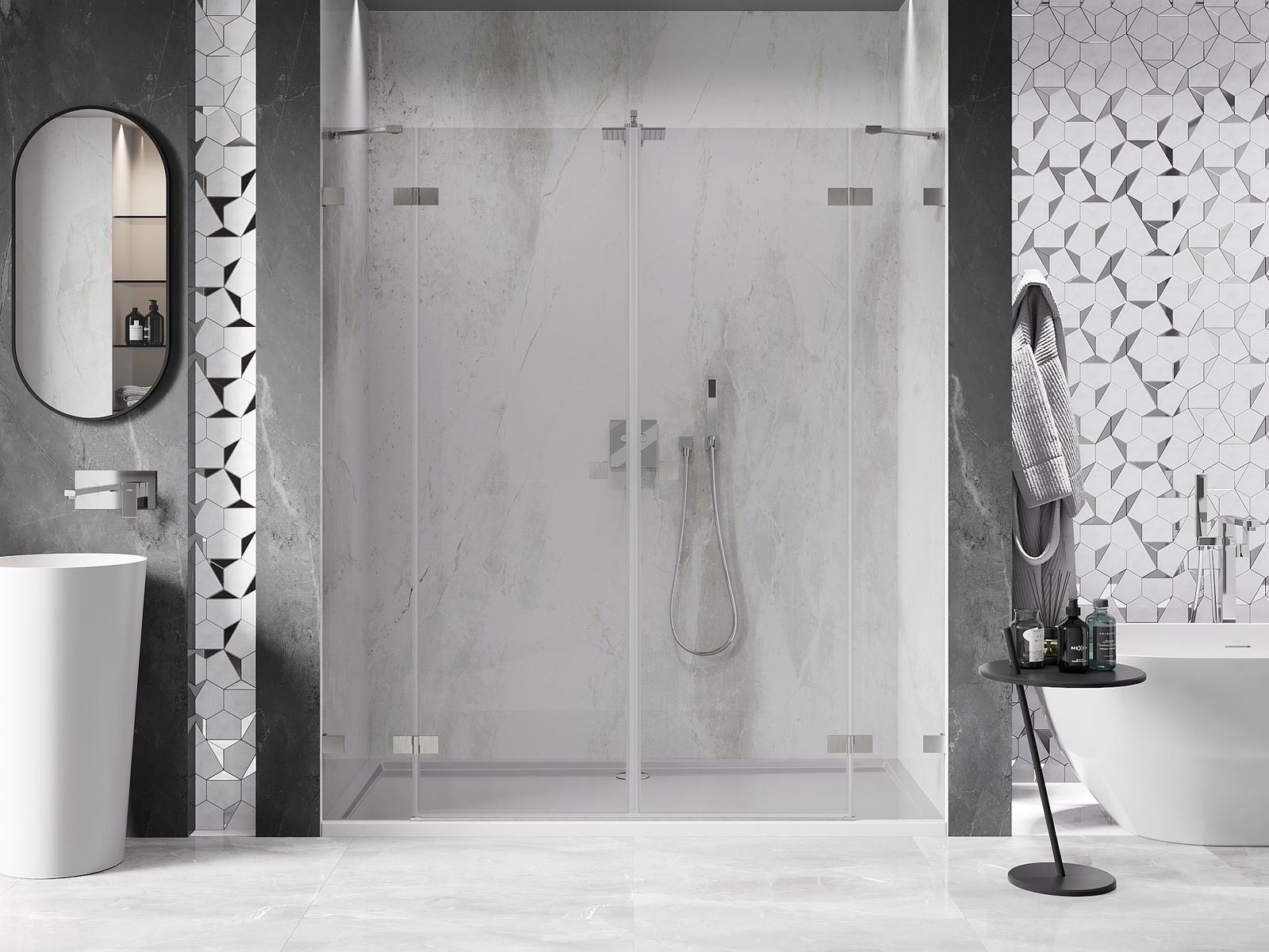 • Mexen Lunar Duo drzwi prysznicowe uchylne 180 cm, transparent, nikiel szczotkowany - 834D-180-000-97-00