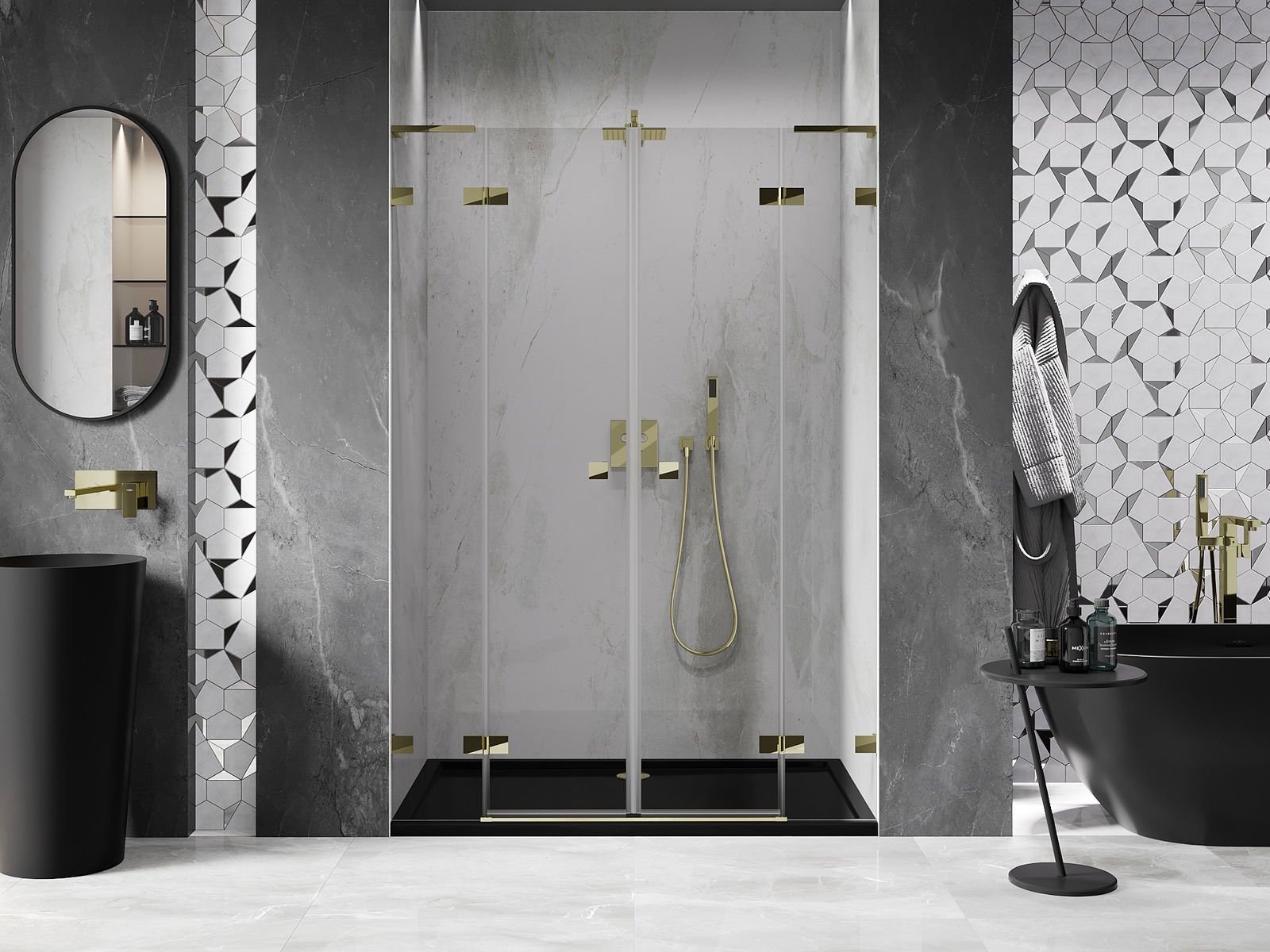 Mexen Lunar L Duo drzwi prysznicowe uchylne 160 cm, transparent, złote - 834DL-160-000-50-00